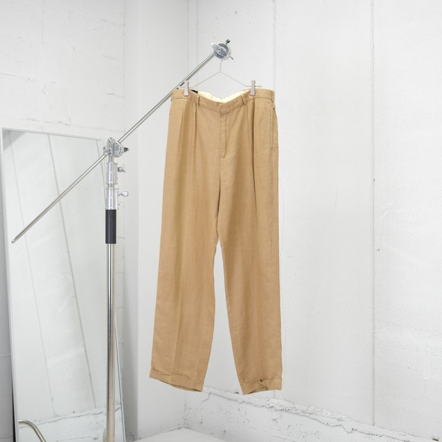 ・通気性ととろみのあるリネン素材 ・ゆったりとしたワイドテーパード ・作り込まれたサイドバックル ・バックポケット付近に汚れ /color ベージュ /size ウエスト : 82cm 股上 : 34cm 股下 : 84cm 総丈 : 117cm 裾幅 : 23cm /material リネン /origin ドミニカ共和国 着用モデル 184cm /condition used 目立つダメージがある場合は商品写真に掲載しておりますのでご確認ください。 十分に検品しておりますが、記載の無い汚れや微細なダメージ等がある場合がございます。 ◾️注意事項 ・当店の商品は一点物のused/vintage商品となります。購入後の返品・交換は受け付けておりません。中には、傷、汚れ等も見受けられる商品もございますが、長い歴史の中で経た経年変化と捉えていただければ幸いです。ご購入の際は、古着へのご理解をお願い申し上げます。 ・細かな商品の状態など、気になる方は些細なことでもご購入前に必ずインスタグラムのDMにてご質問ください。 ・同時に店頭にて販売している商品となります。店頭販売を優先させていただいておりますので、お問い合わせの最中に売れてしまう場合もございます。予めご了承ください。 ・商品の色味は、ご覧いただく環境やカメラの性能によって多少の差異がある場合がございます。より正確な色味を気にされる方はご購入前にお問い合わせください。 ◾️送料 全国一律 ¥1,000 ¥20,000-(税込)以上お買い上げで送料無料