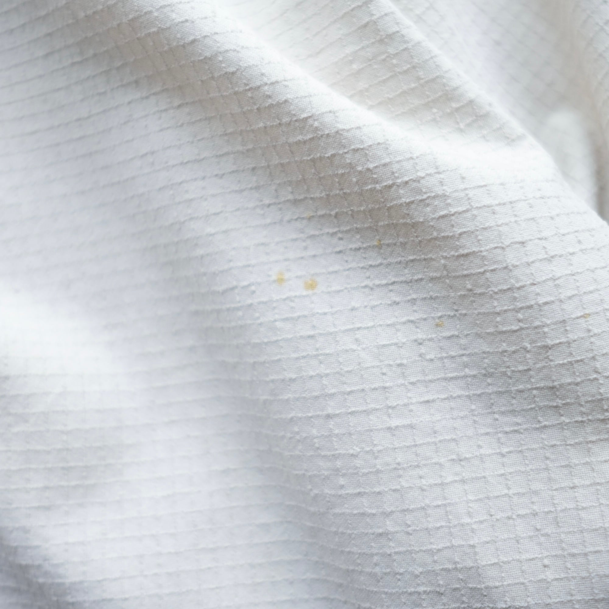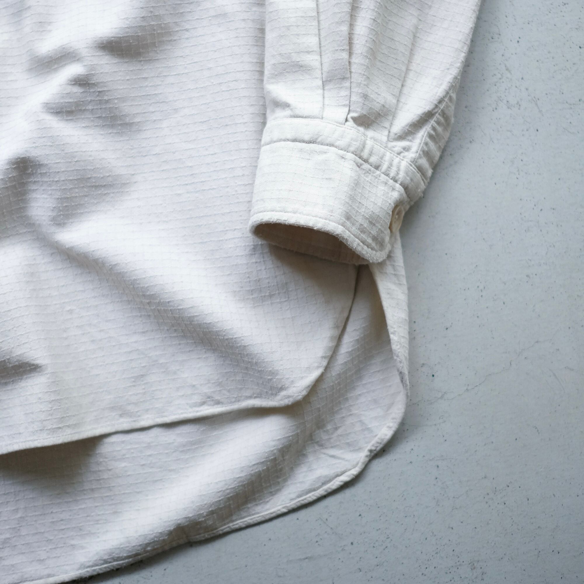 程よくハリがあり肌触りの良い格子状の織りを用いており、カジュアルとドレスの雰囲気を併せ持つ。