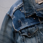 コンパクトなサイジングで、様々なファブリックを使いカスタムされたラルフローレンのデニムトラッカージャケット。