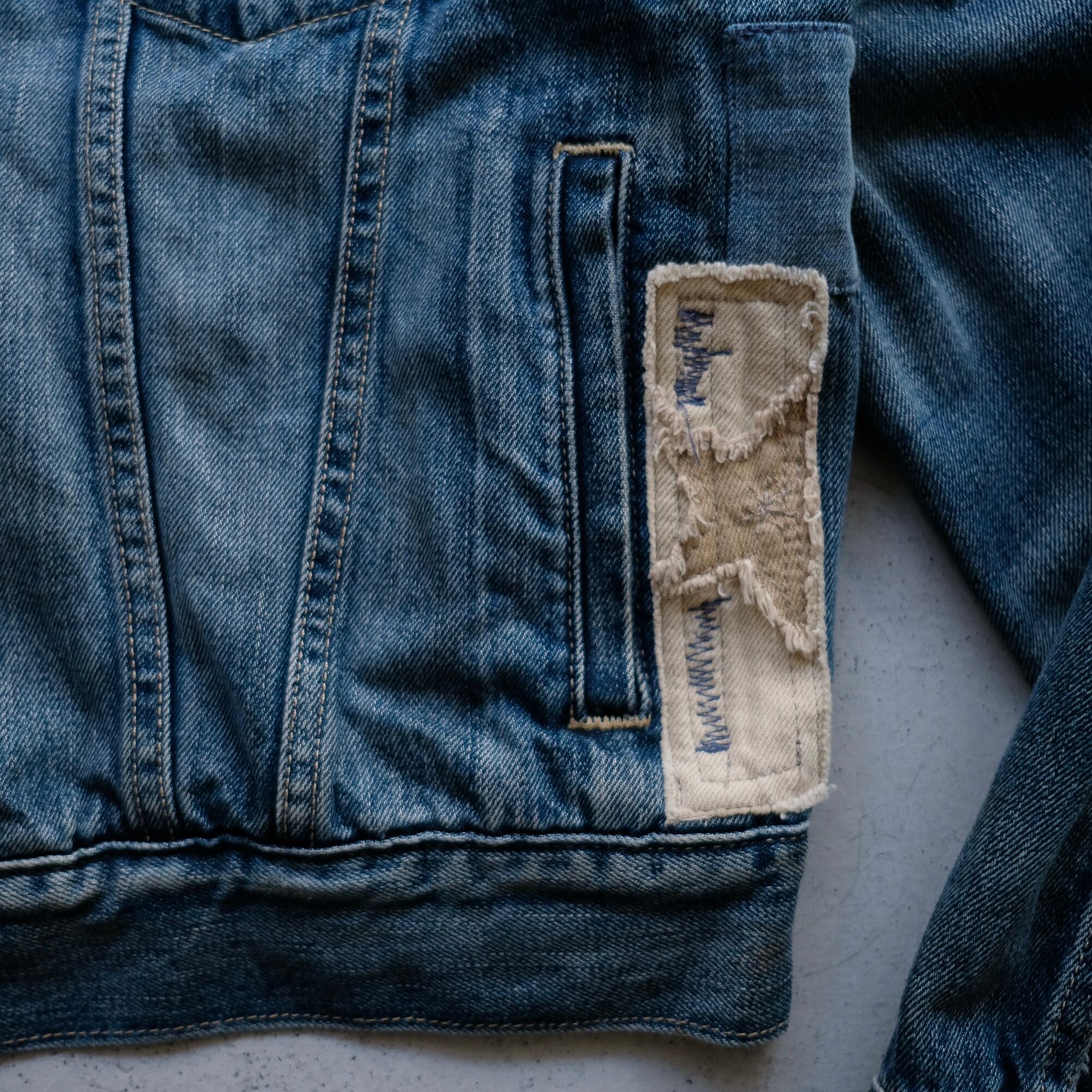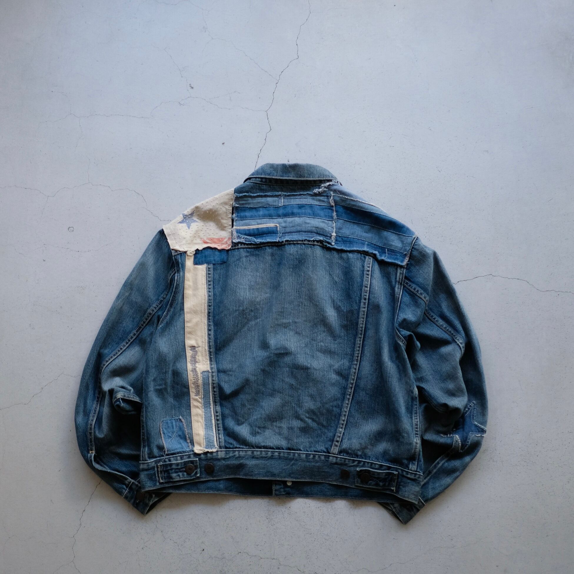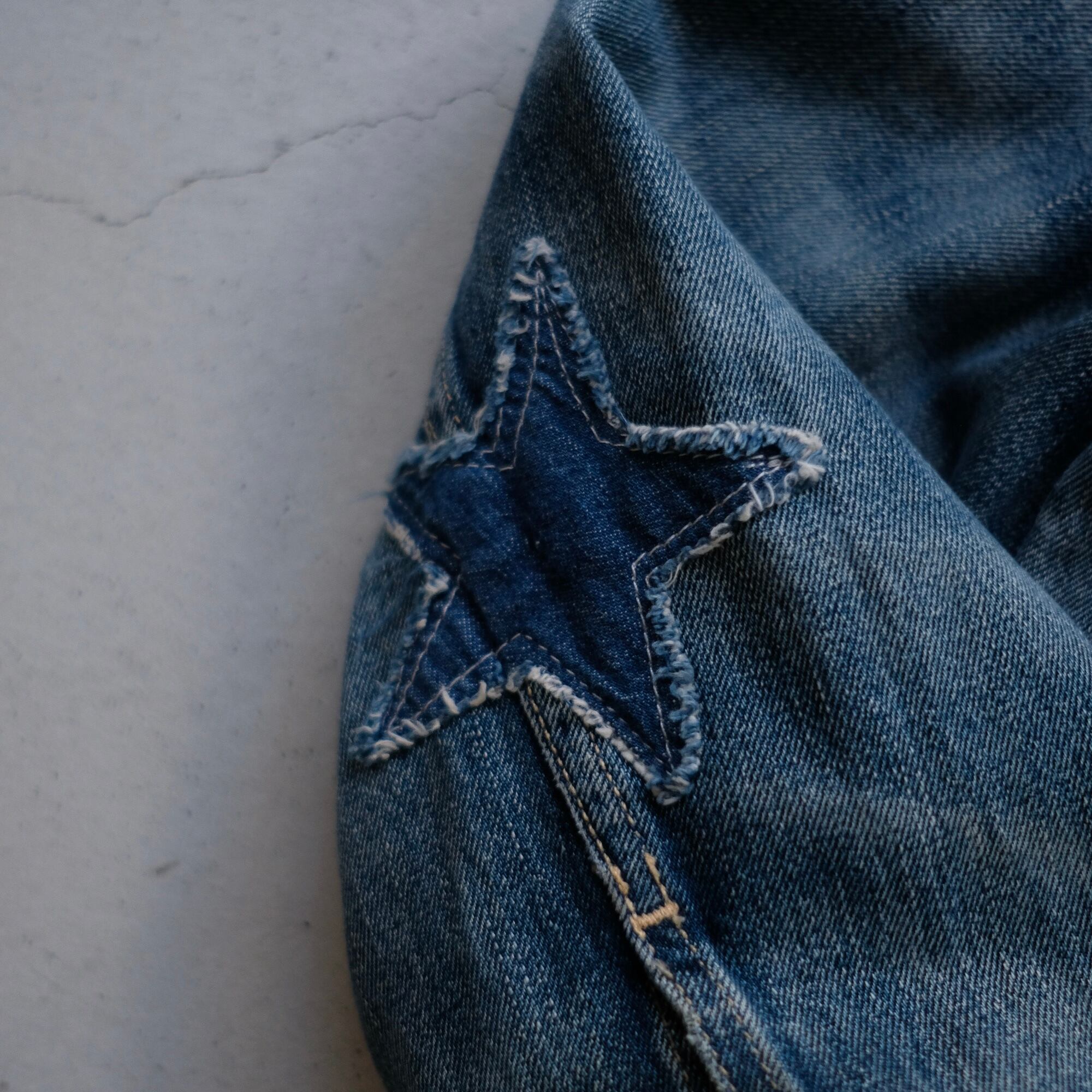 刺し子の様なリペアや星のパッチワークなど、リメイクのセンスが光る逸品。