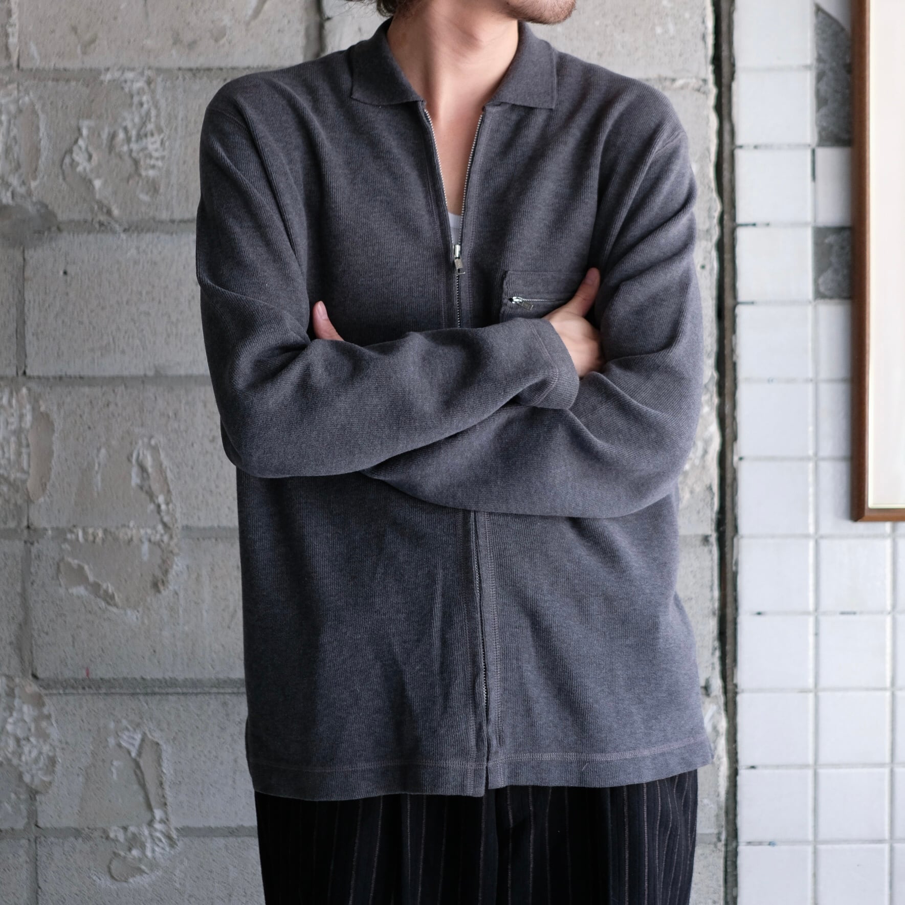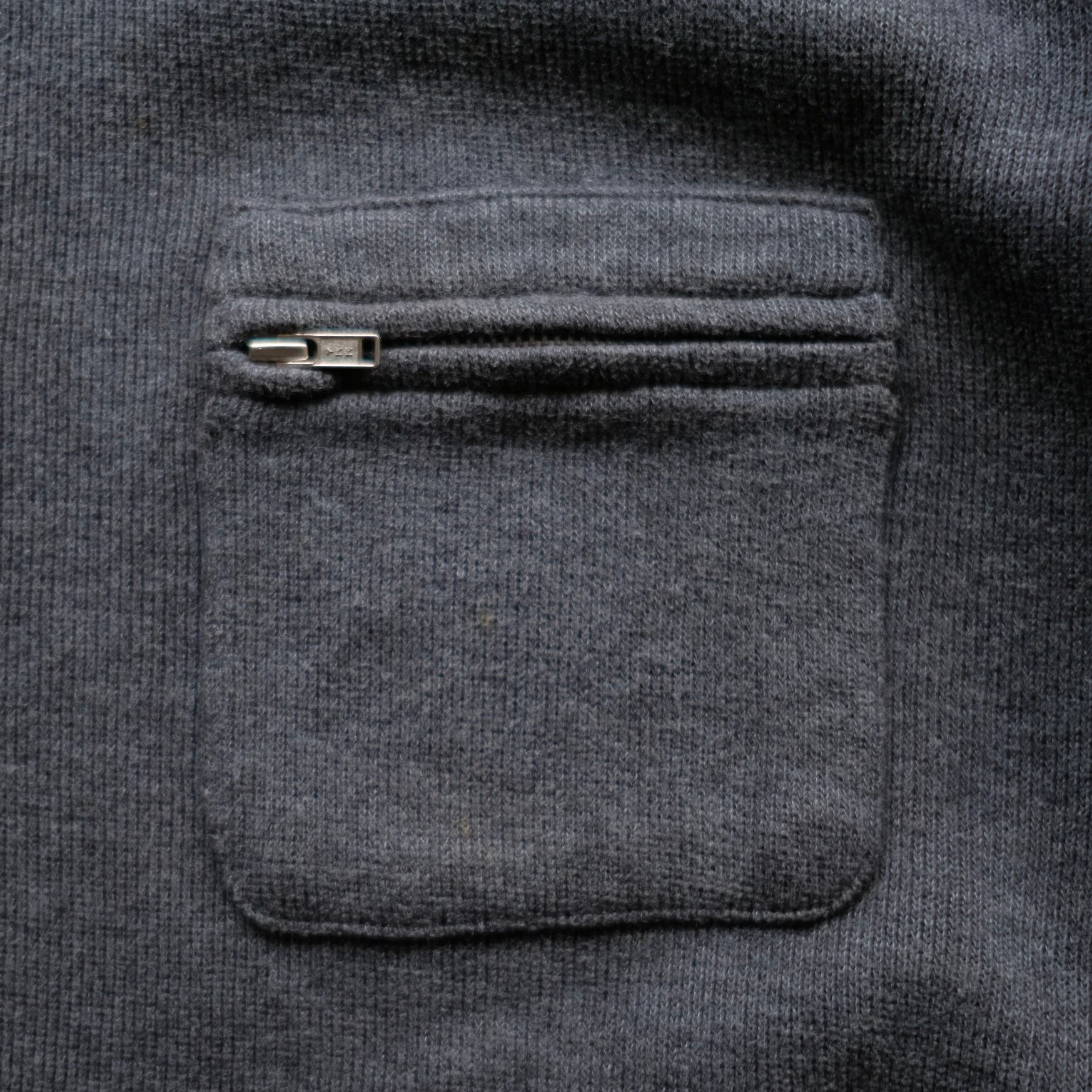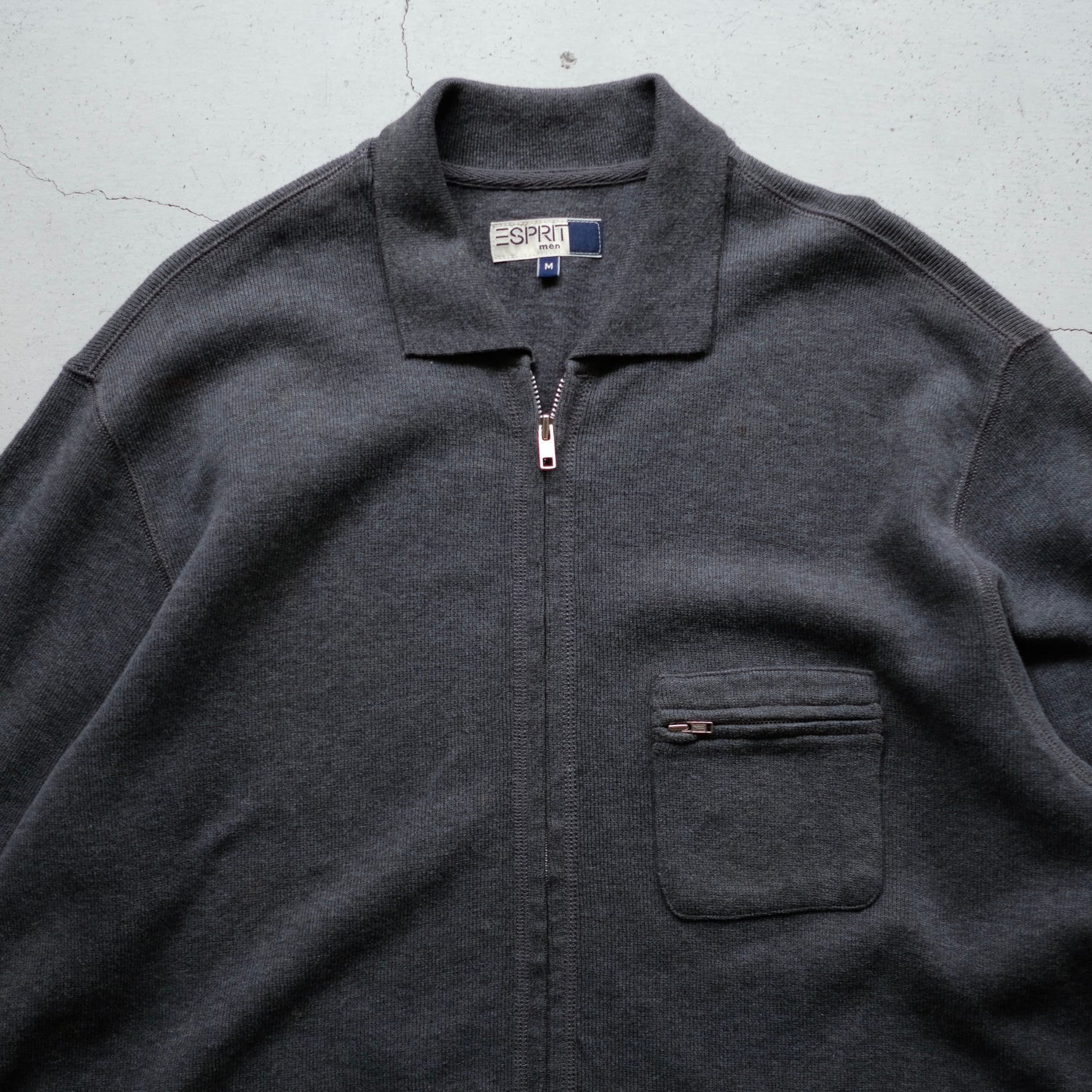 柔らかく着心地の良いコットンニットを使用し、袖はリブ無しの裾ボックスカット。重心が低く小ぶりでキュートなジップ付き胸ポケットやポロシャツのようなフラットで丸みのある襟など、エスプリらしい