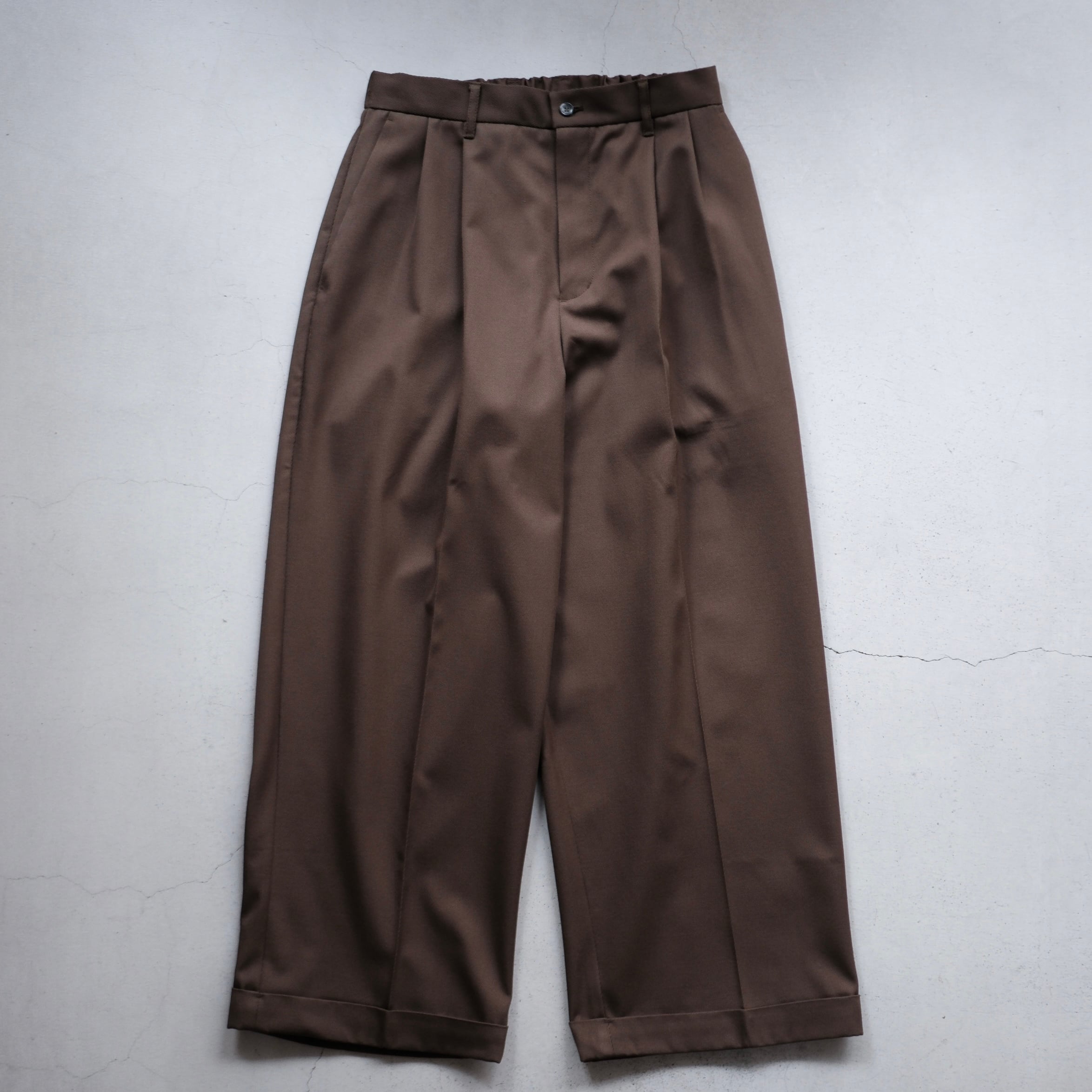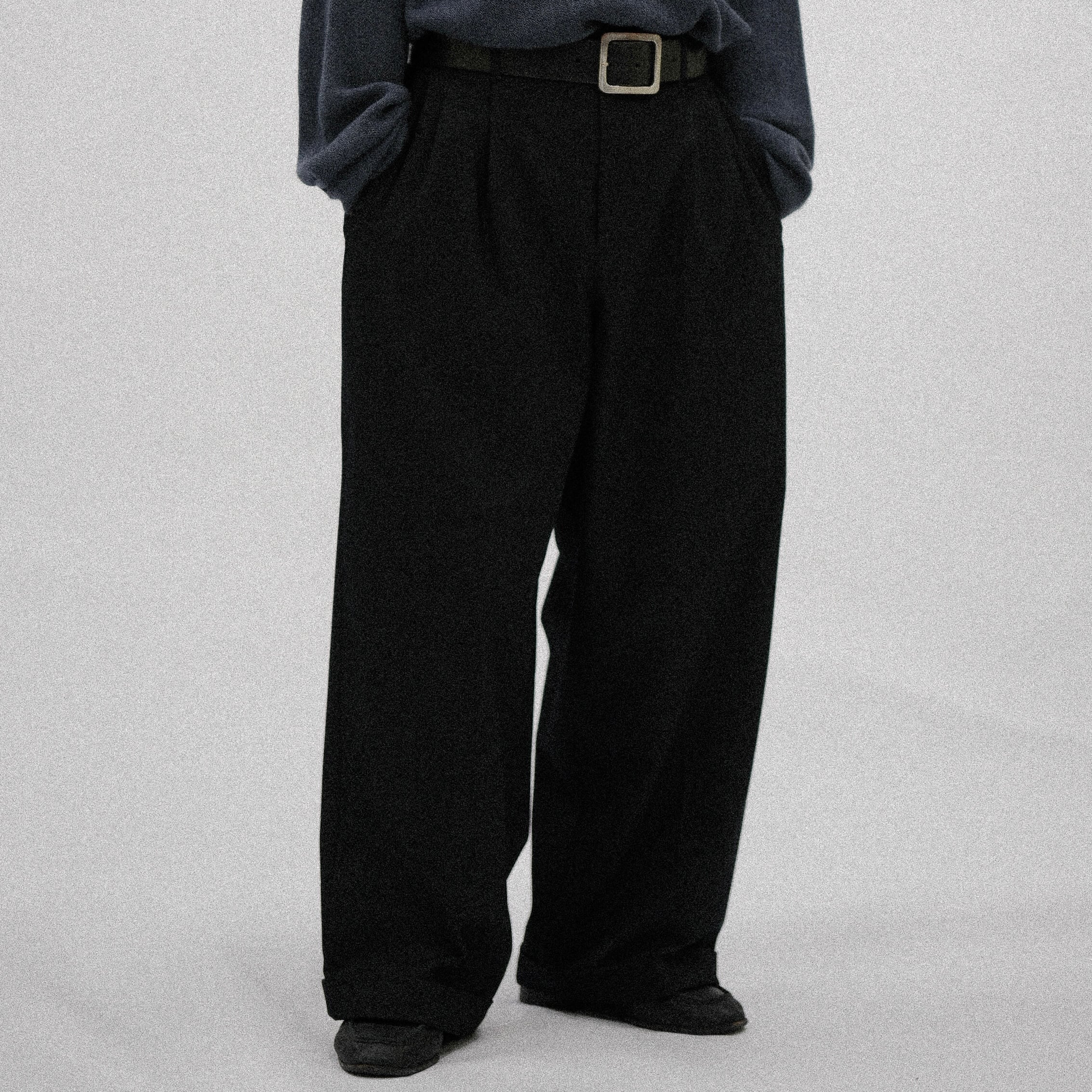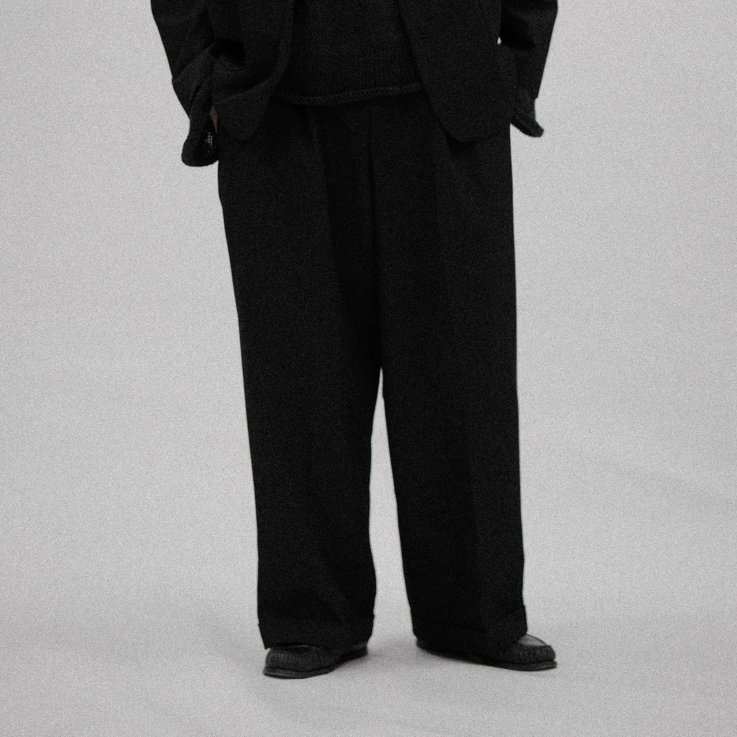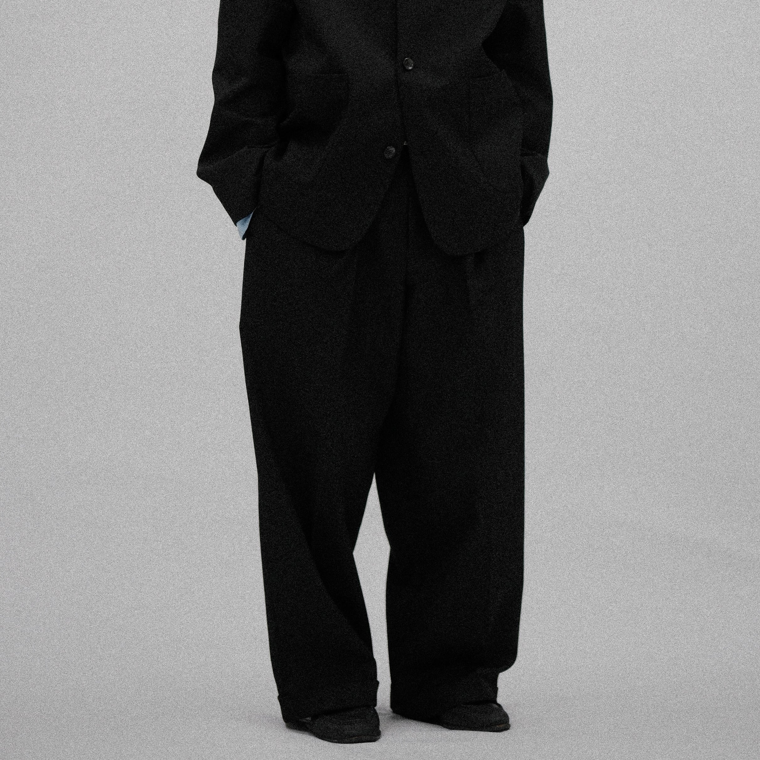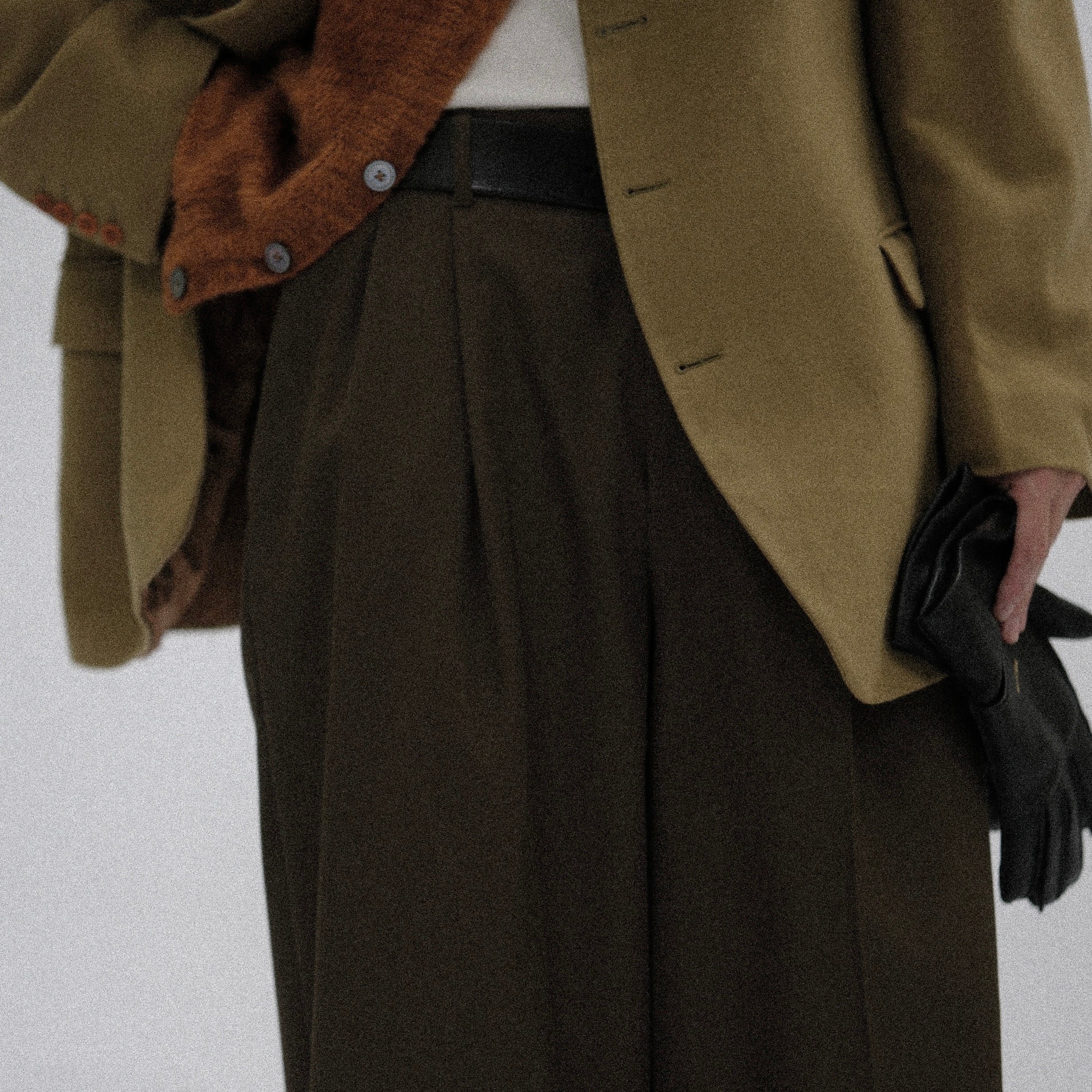 TYLEのオリジナルメンズスラックスをリリースします。上質なウールの糸であるsuper100'sの原料を高密度に織り上げたウールギャバジンを使用したバギースラックス。凹凸のある綾目によってドライタッチな生地に仕上がり、ウール100%にも関わらずコットンのような肌触りとハリ感、ウールの品のある光沢感が共存しています。ウエストをイージー仕様にすることで腰回りにリラックス感をもたせ、絞りのないバギーシルエットが素材感と相まって普遍的でありながら存在感のあるスラックスが仕上がりました。この機会に是非お試しください。