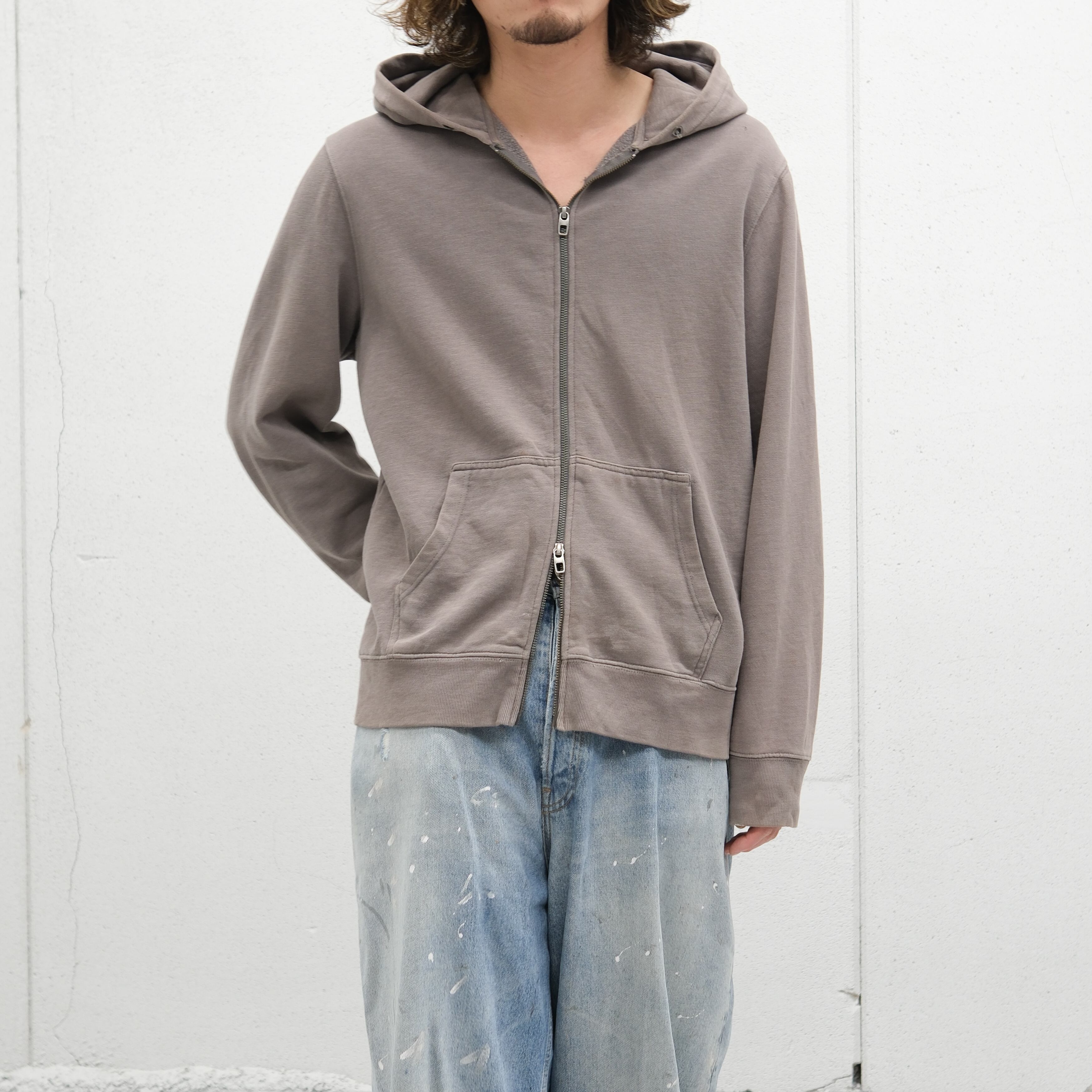 cotton faded double zip hoodie