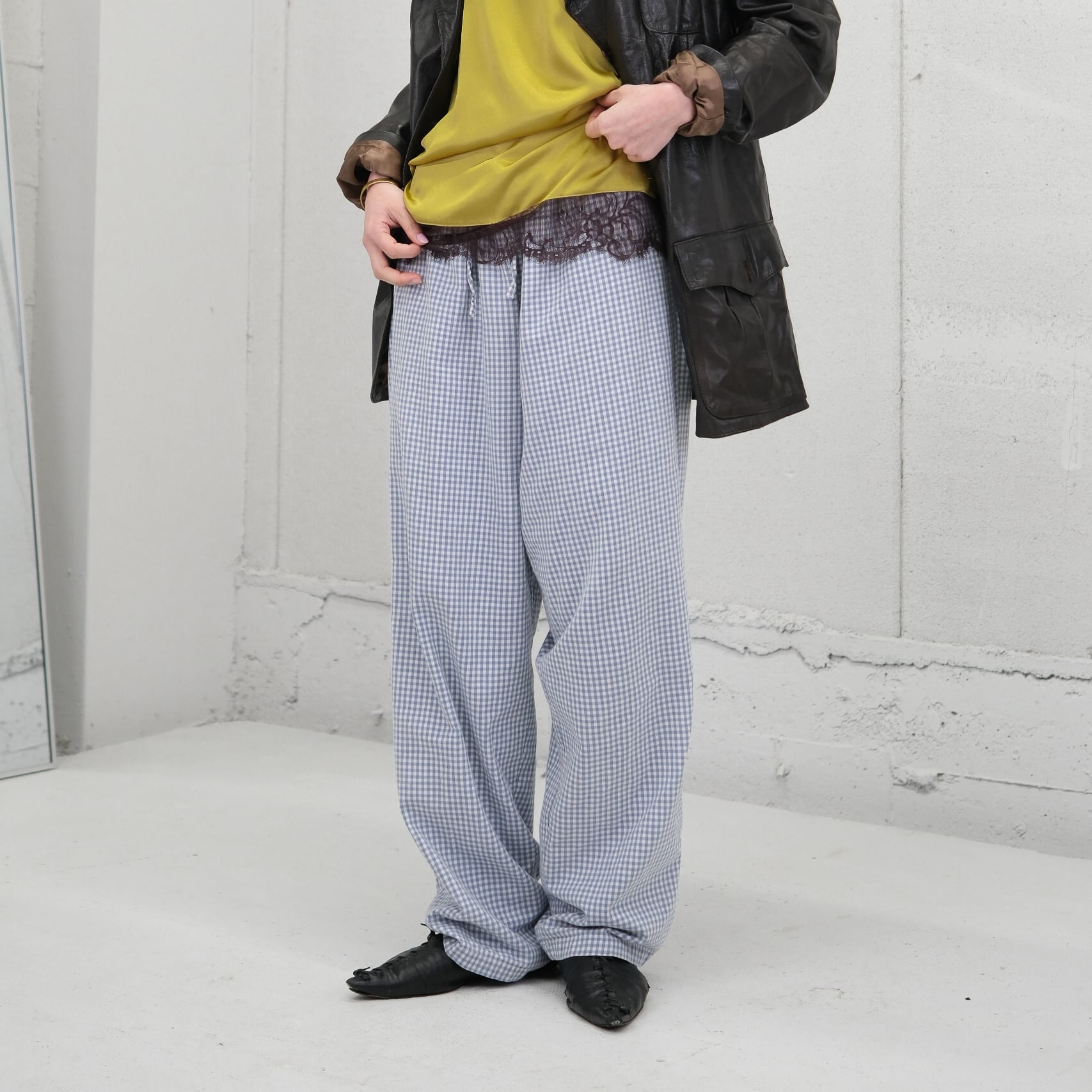 cotton gingham check easy pants