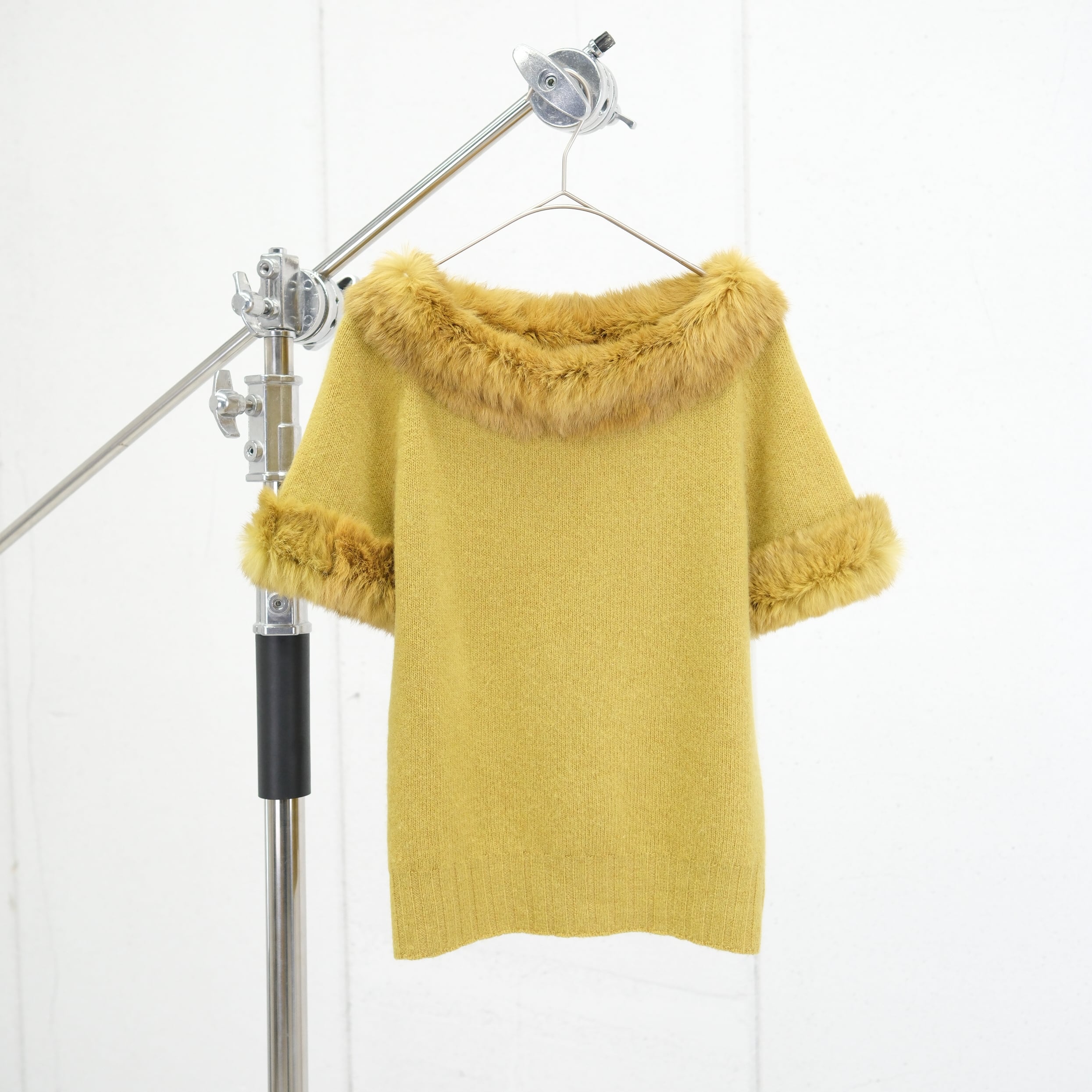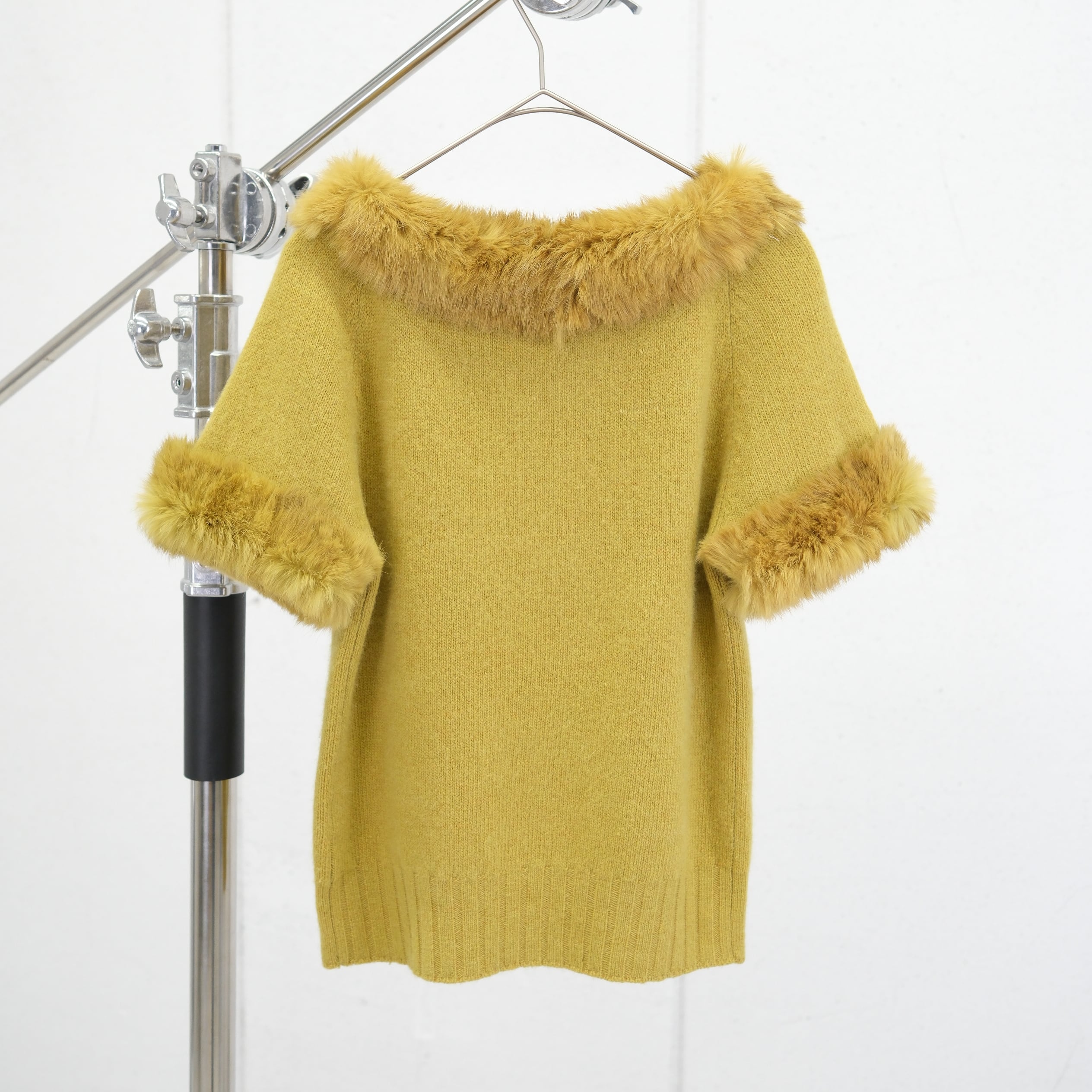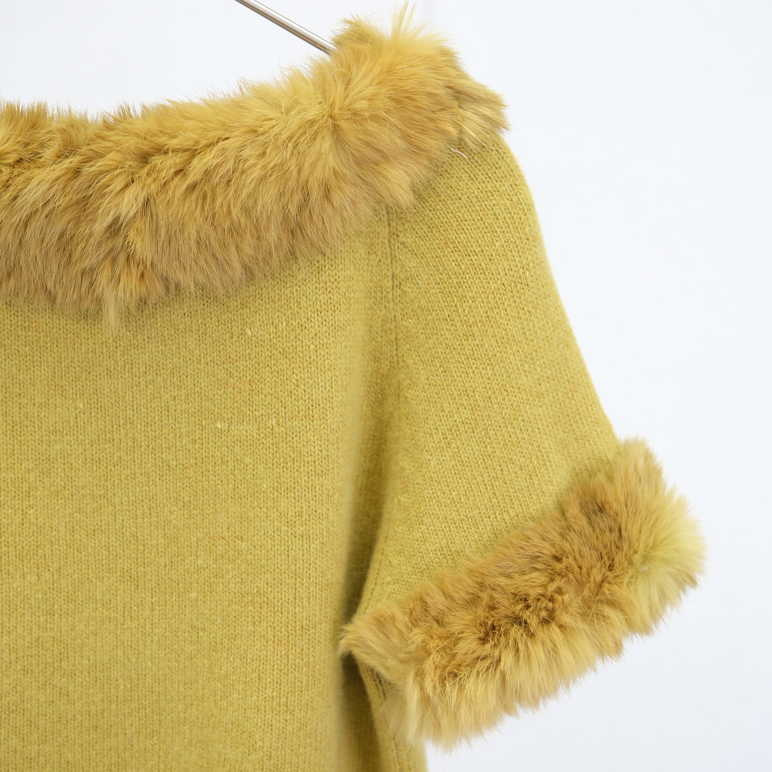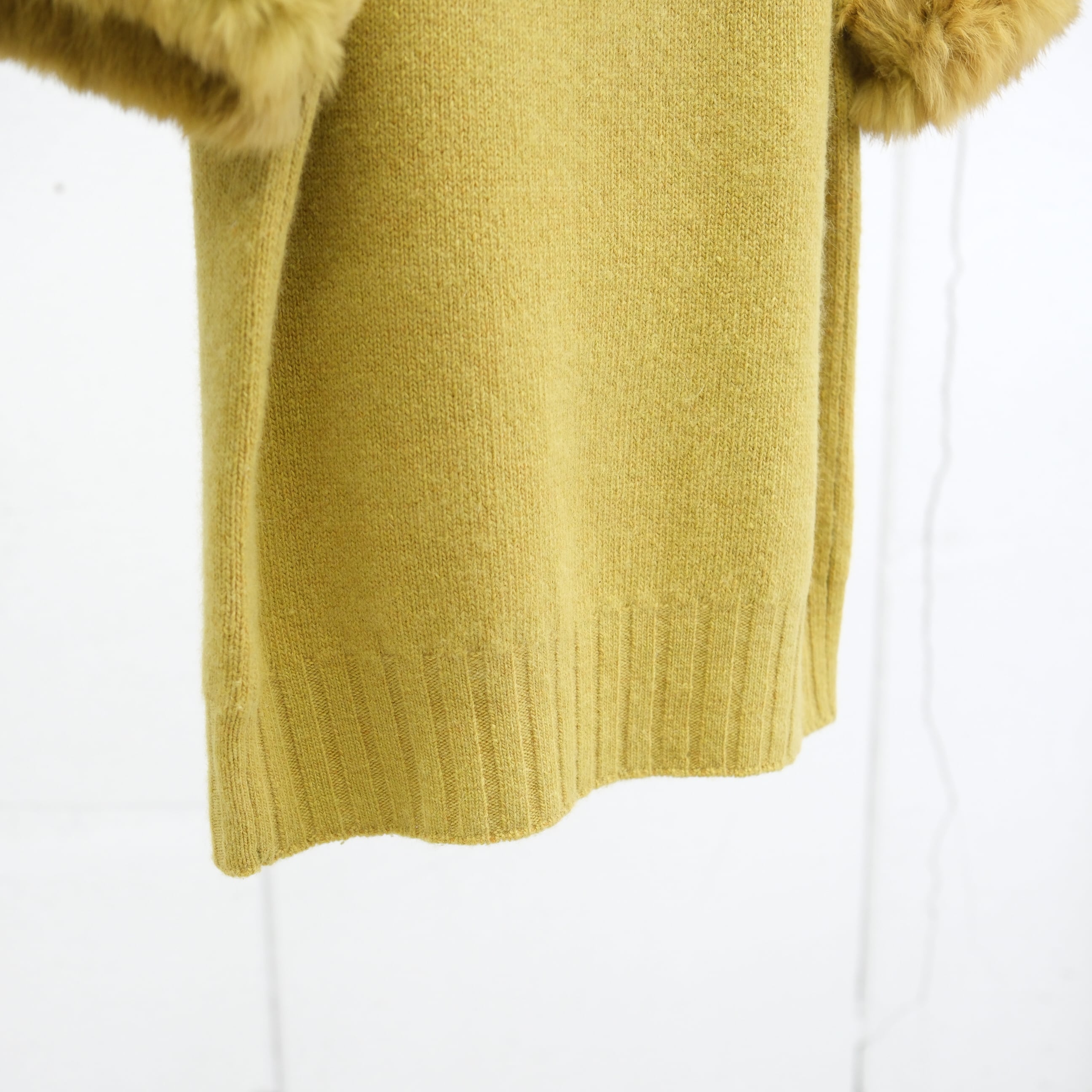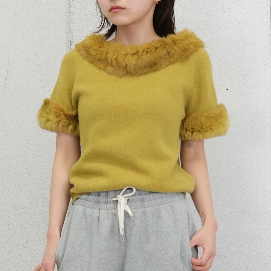 ・ネックと袖口にファーを配したニットトップス