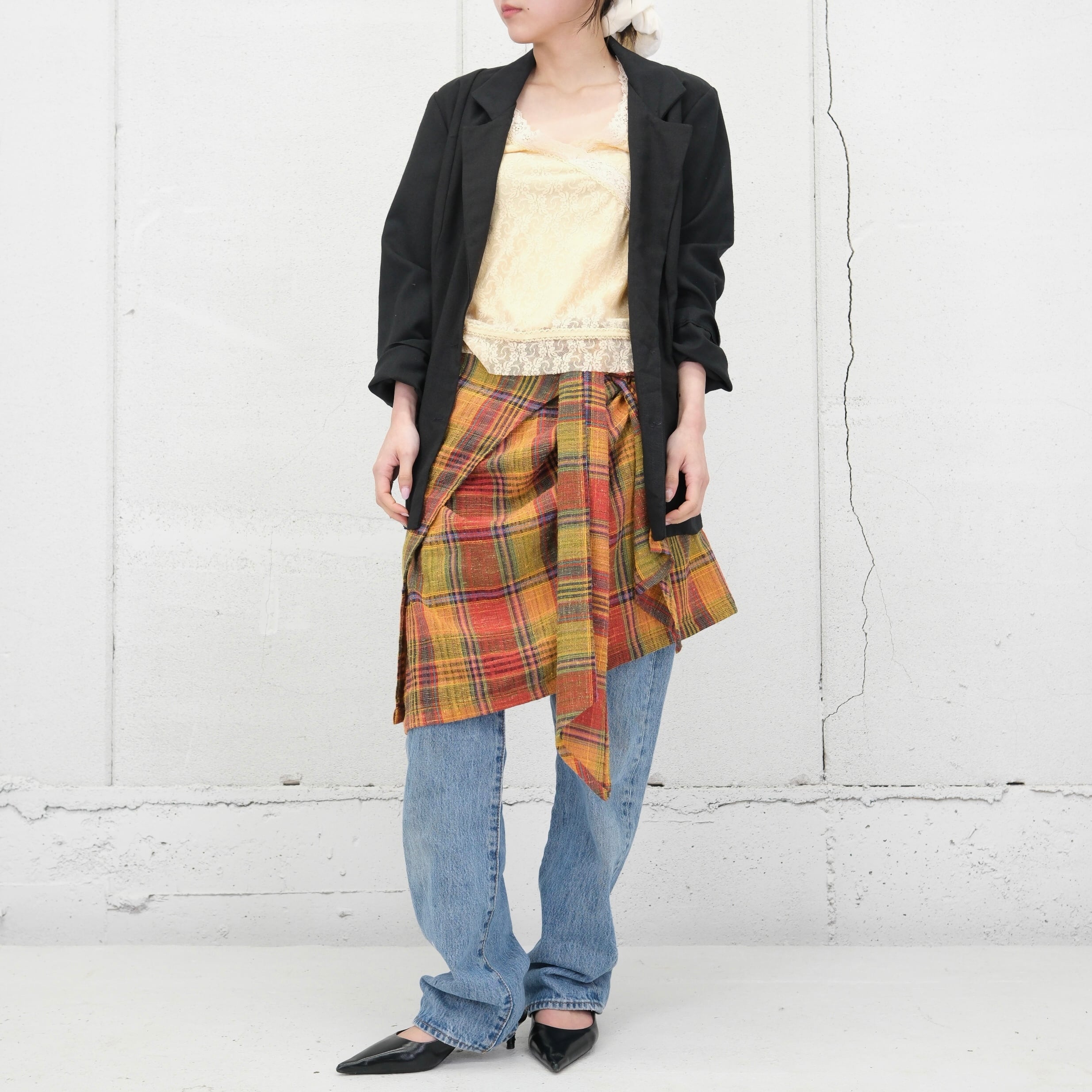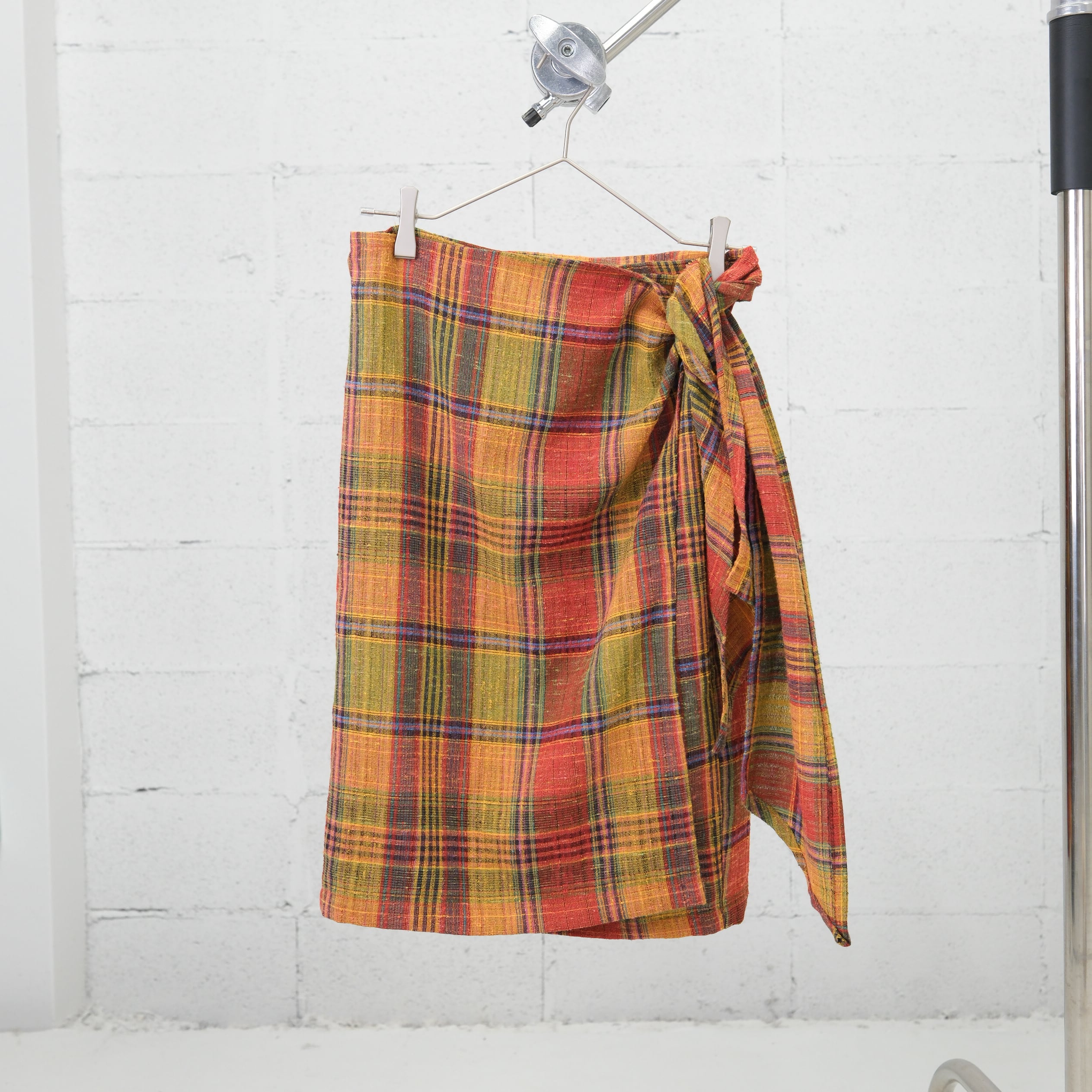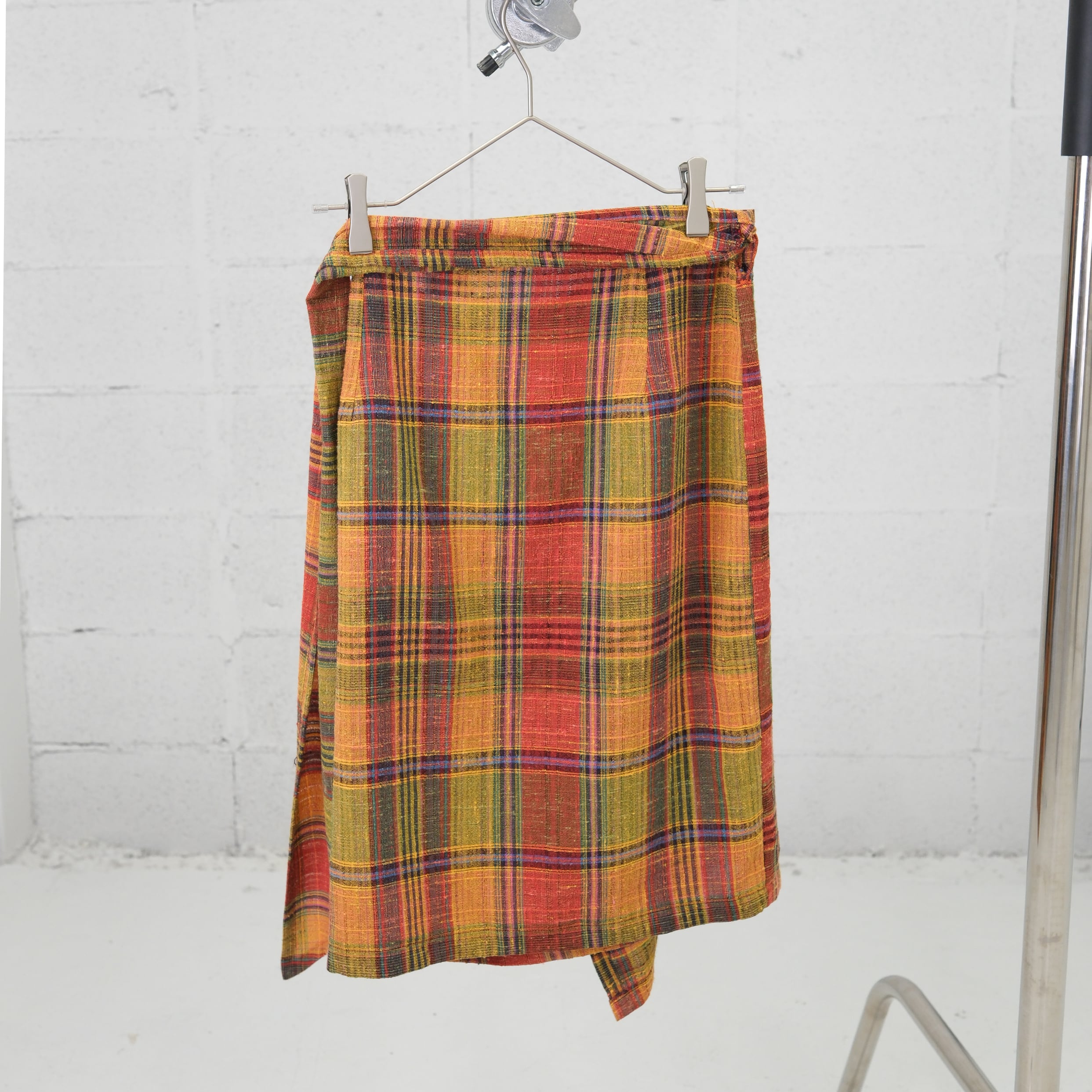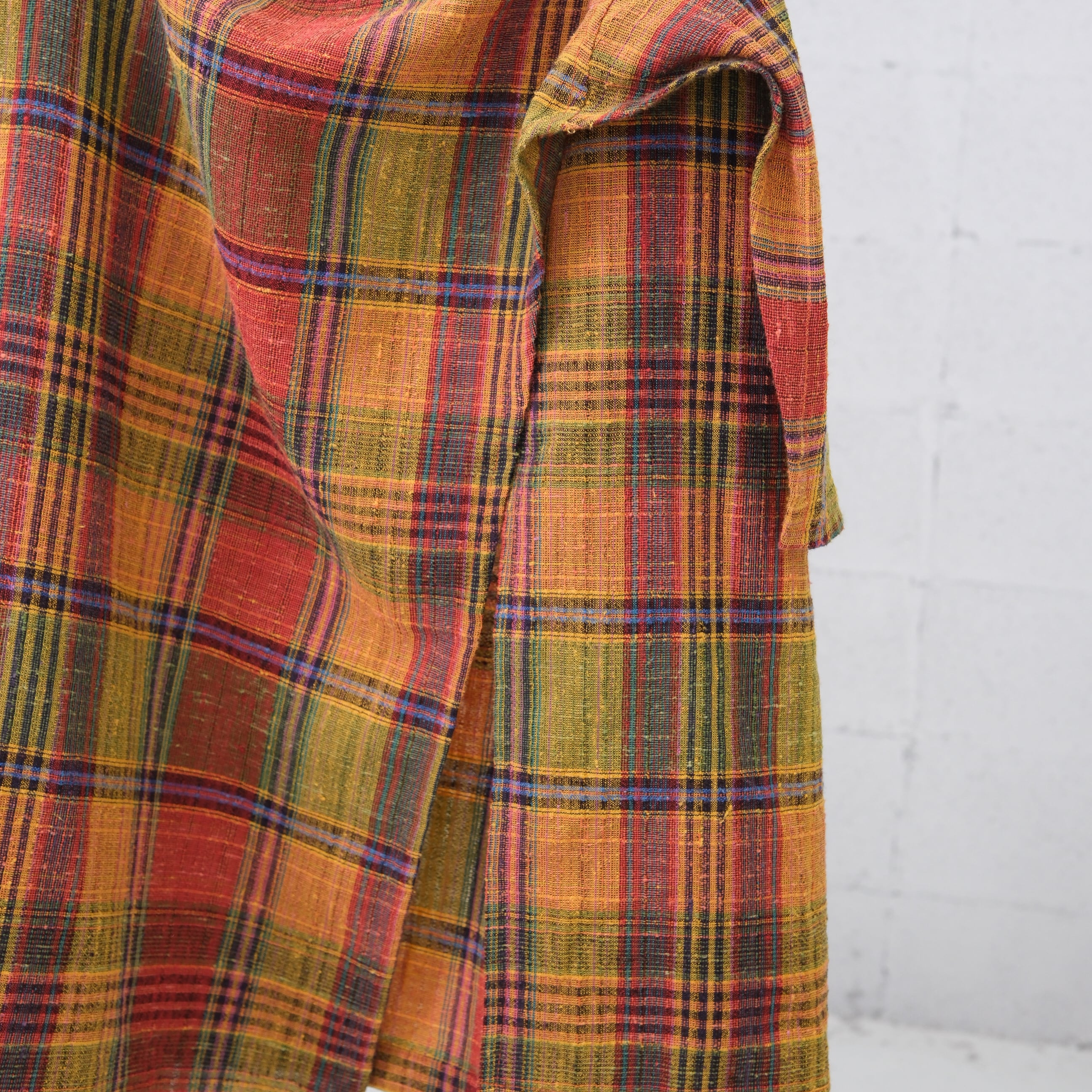 ・オレンジベースにグリーンやイエローが混ざった、温かみのあるチェック柄