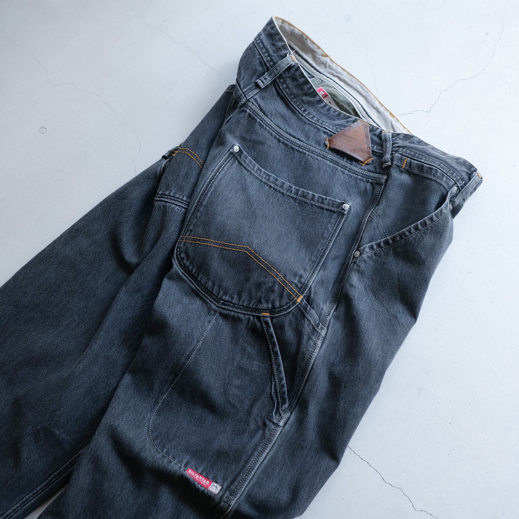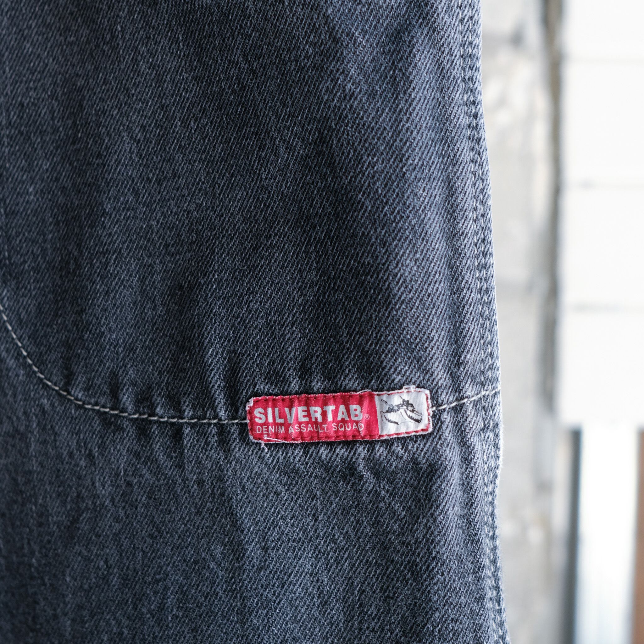 リーバイスのコンテンポラリーラインとして位置付けされるシルバータブより、その中でも特に人気のある"OVERSIZED"のブラックバギーデニムパンツ。ペインターポケットや、丸みのあるバックポケット、戦車がデザインされた織りネームなど通常使用されていないディテールも多く、2000年代初頭らしいストリート感のある仕上がりに。殆どテーパードのかかっていないズドンと落ちたシルエットが存在感のある一本。
