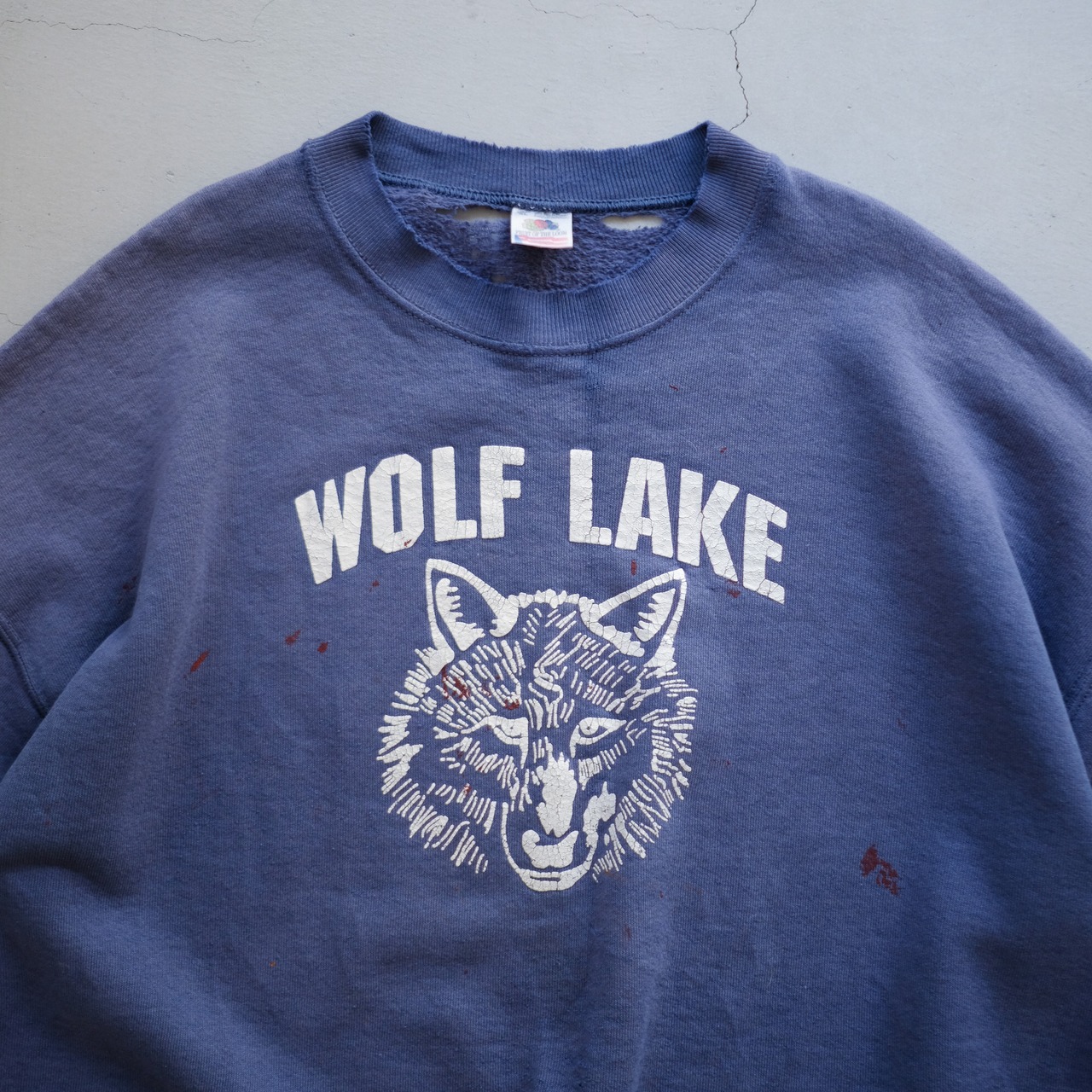 1990s "WOLF LAKE" good faded/damaged print sweat