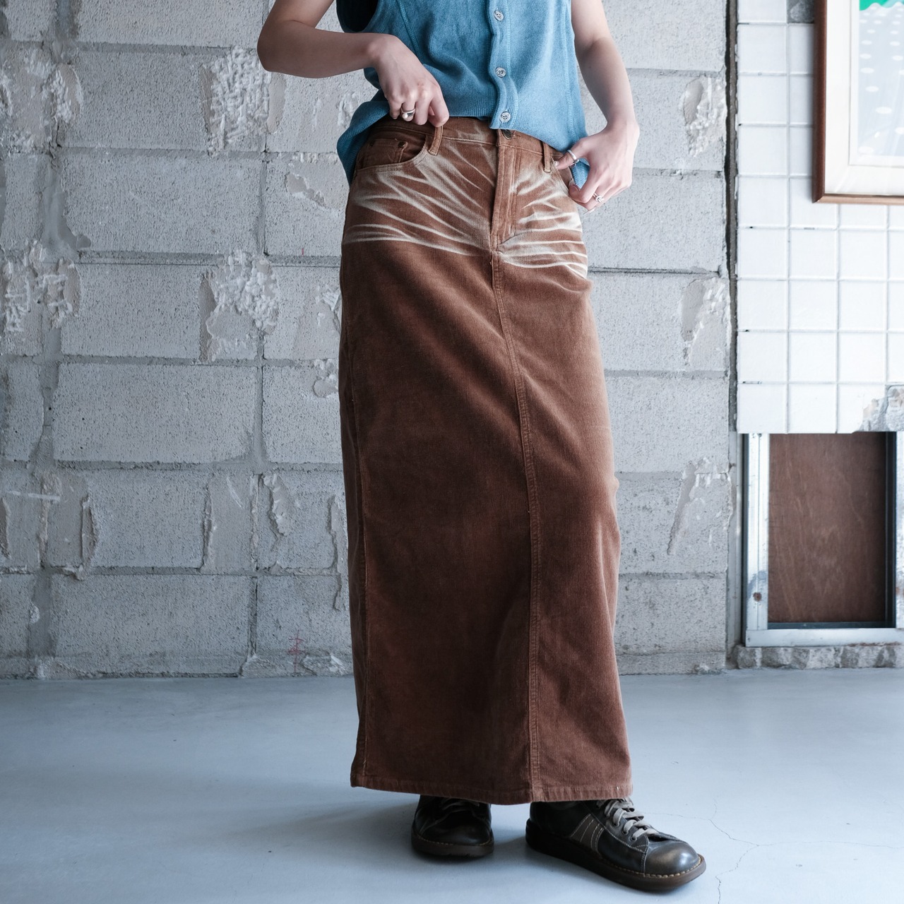 1990s~ corduroy washed design maxi skirt