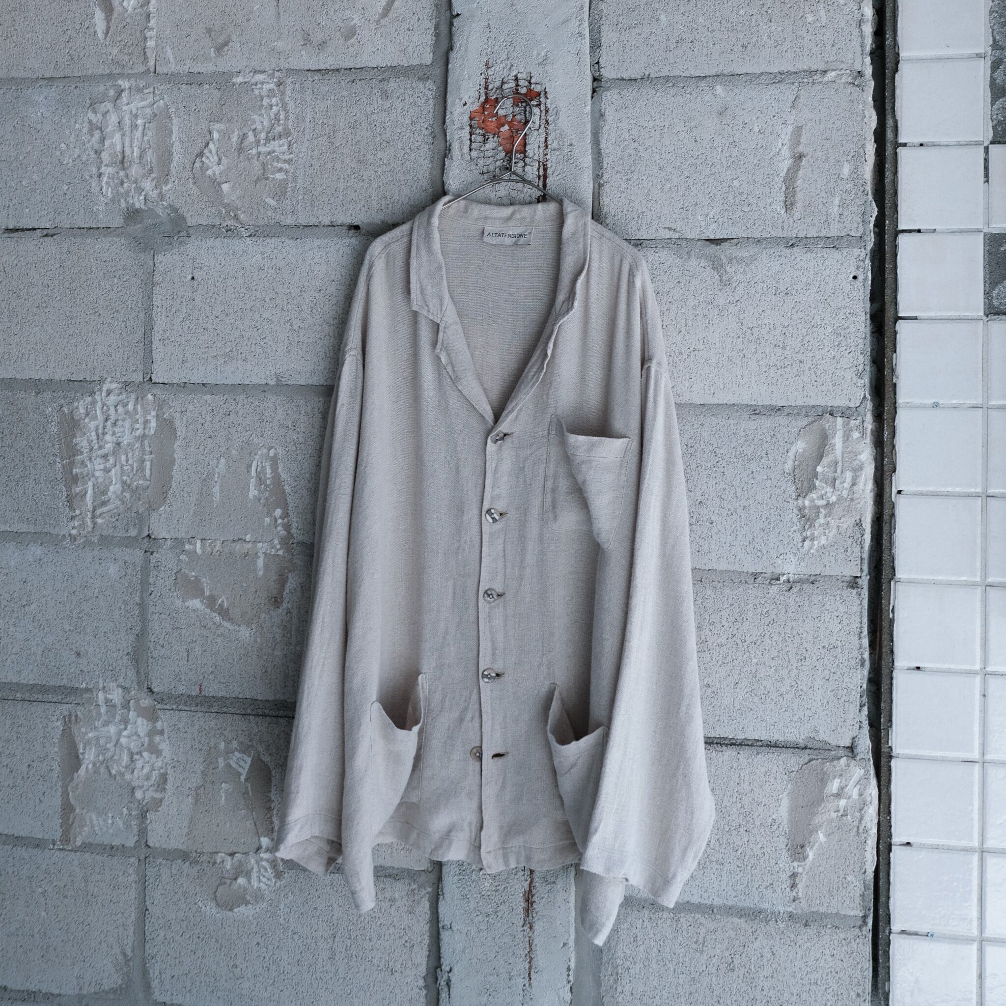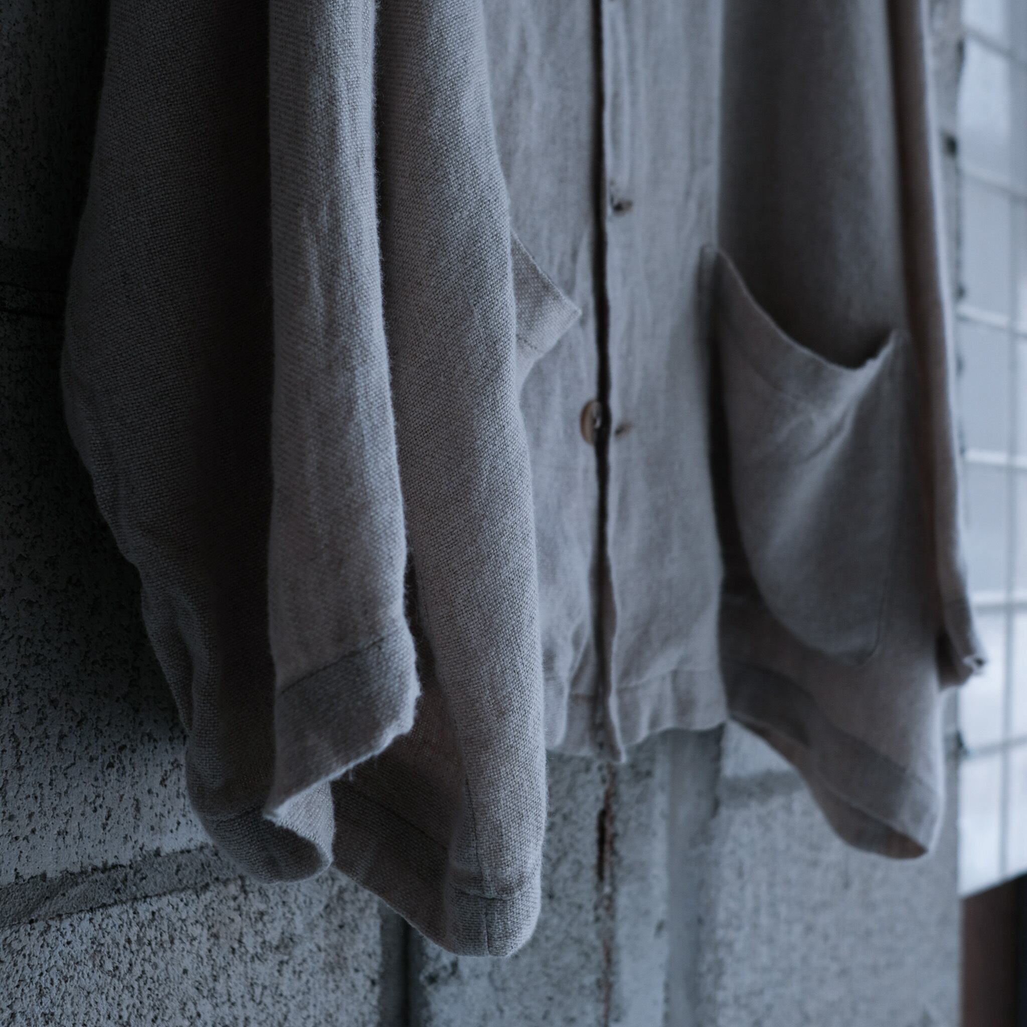 リネン100%のリラックス感のあるテーラードジャケット。裏地のない一重の仕様で、肩はドロップ。ウエストのシェイプも無く、カーディガンのような感覚で気軽に羽織れるジャケット。素材そのままのアイボリーカラーも雰囲気◎。ありそうで探すと中々無いカテゴリー。