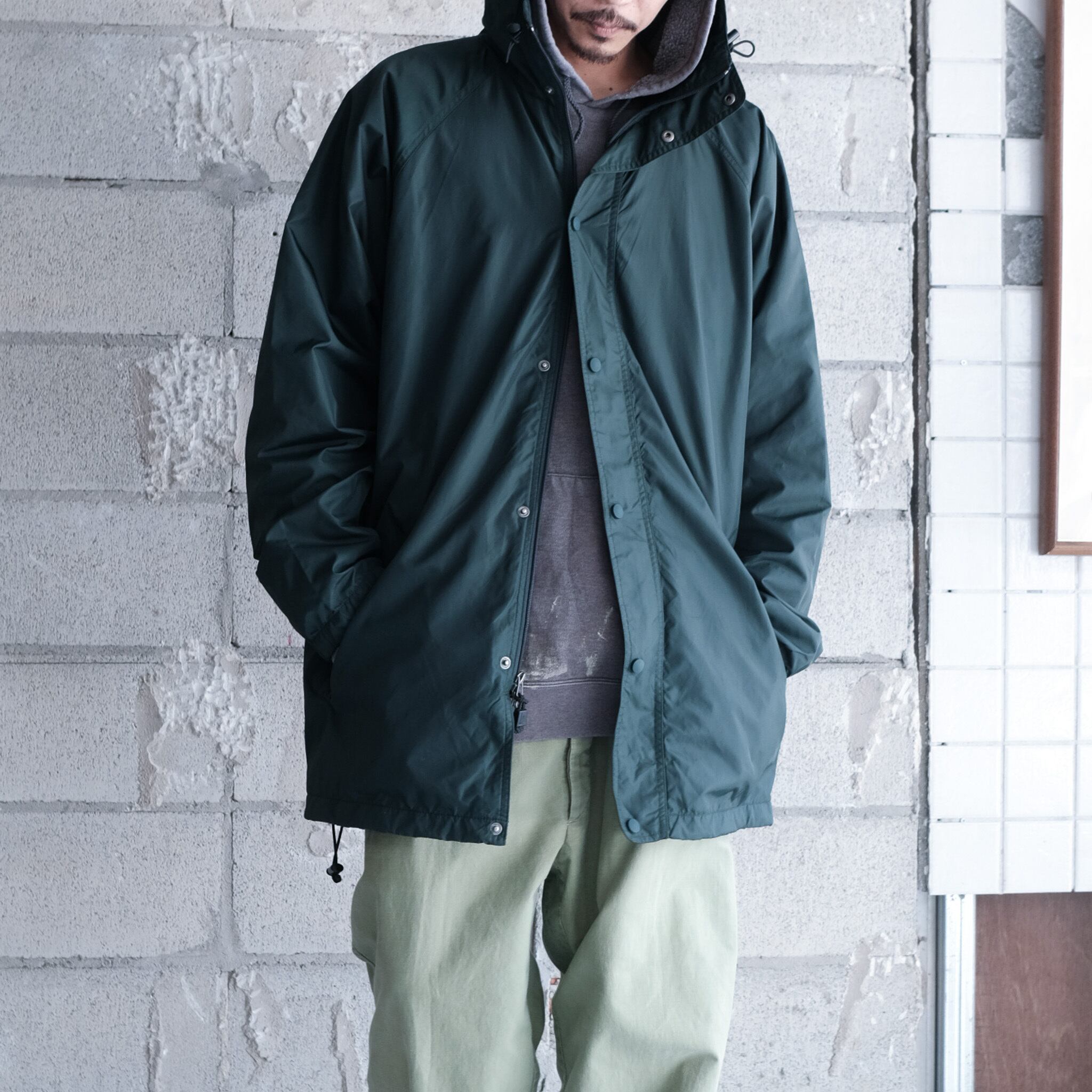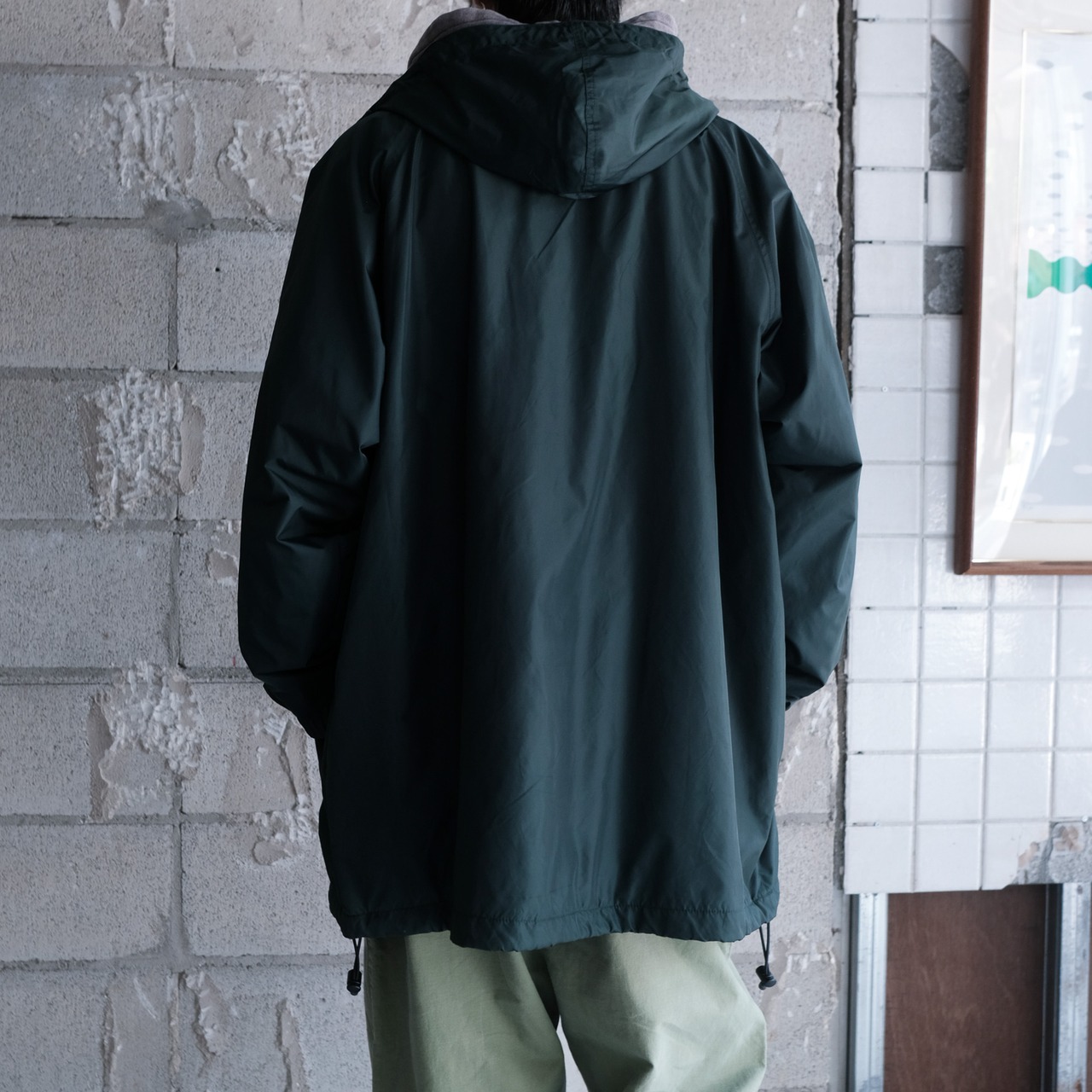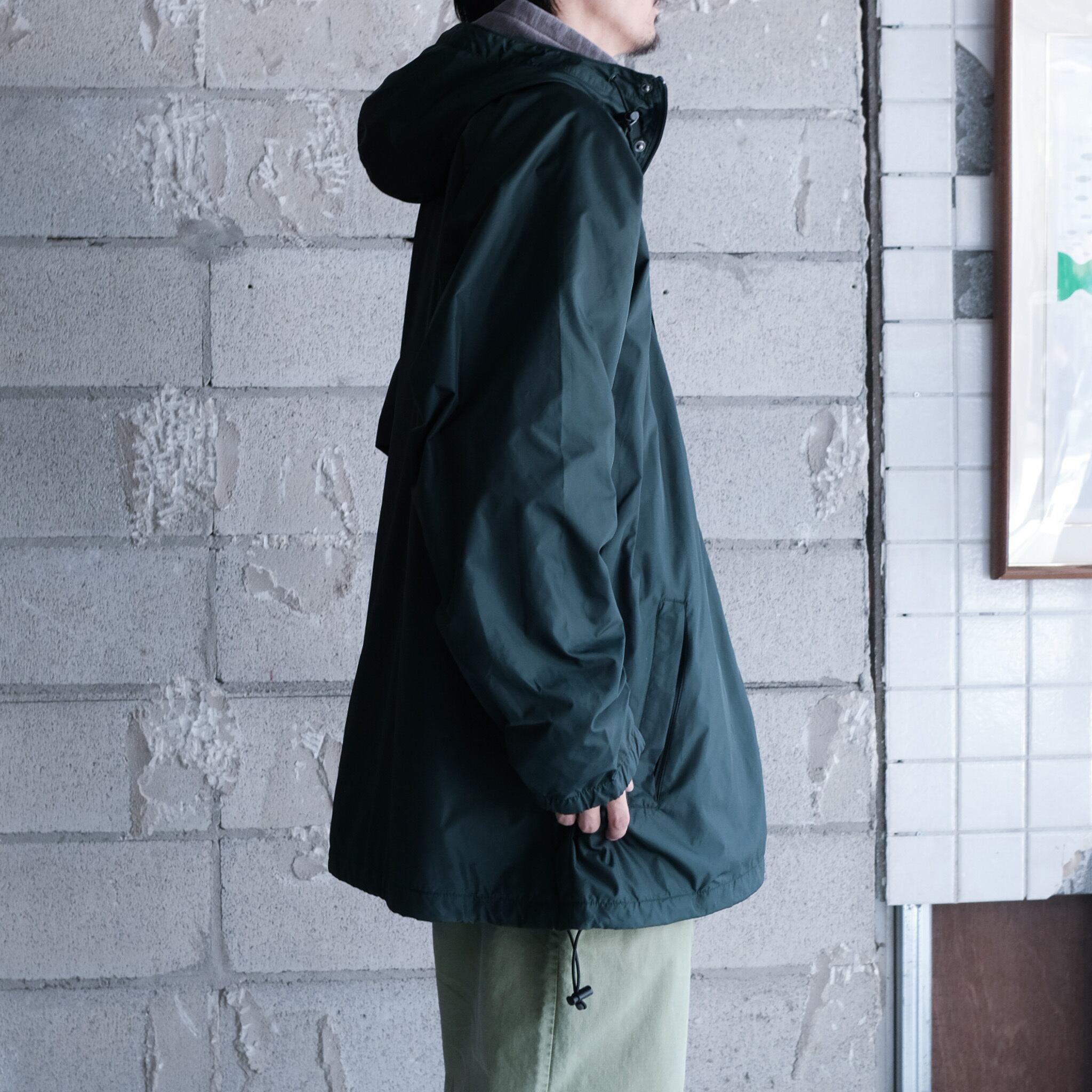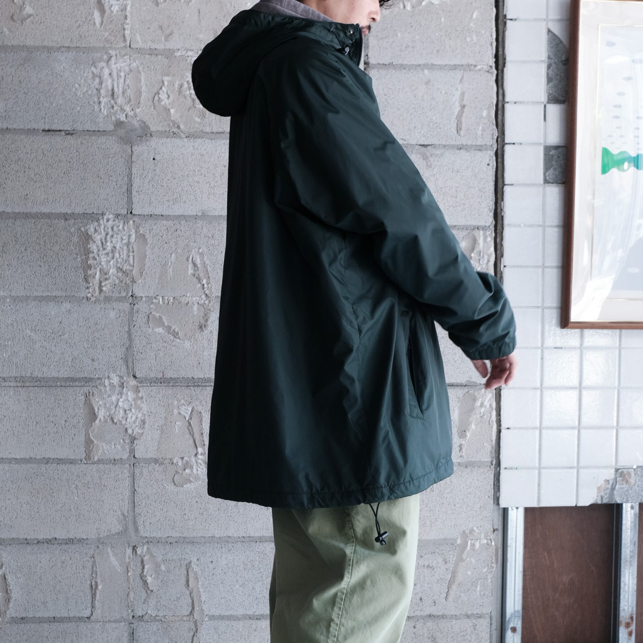 人気のj.crewのスポーツライン"J.CREW SPORT"からハーフ丈のシェルジャケット。大きめのハードに顎まである高めの襟、ボディと同色のボタンに加えダブルジップの嬉しい仕様。スタイリング次第で大きく印象が変わる着回しの効くライトアウター。全体的にリラックス感のあるシルエットで太いアームホームによってインナーに着込むことも可能。