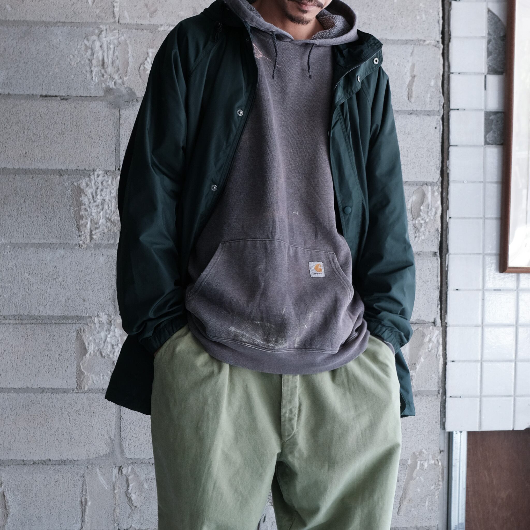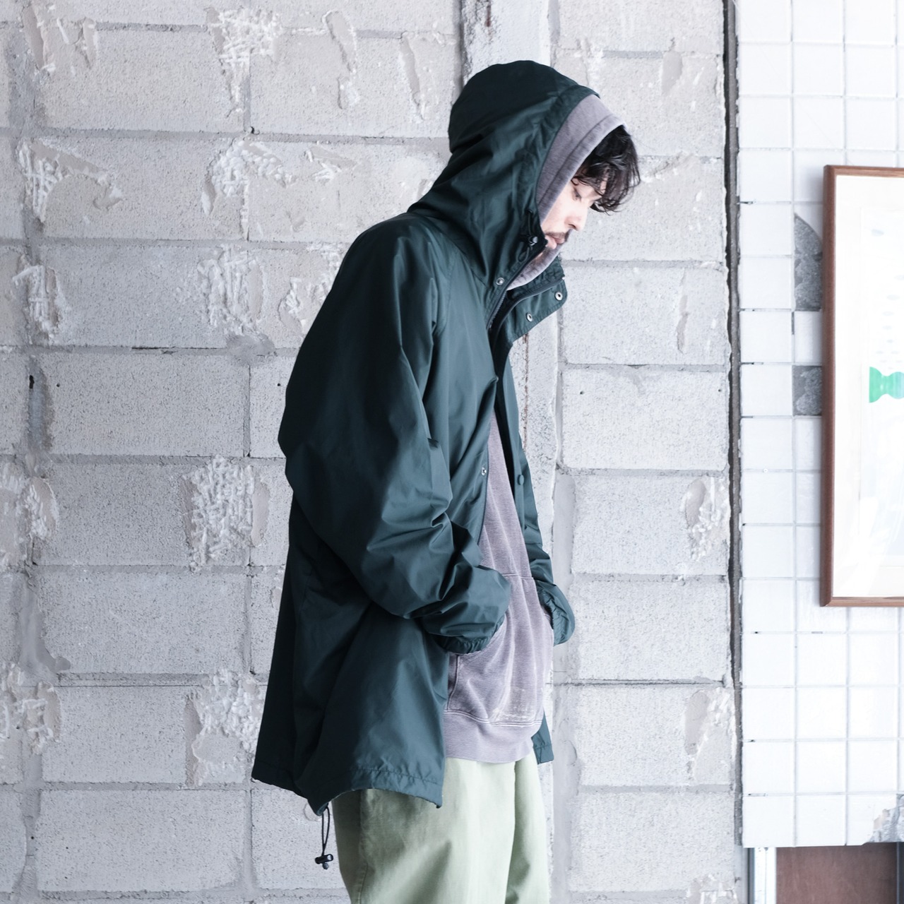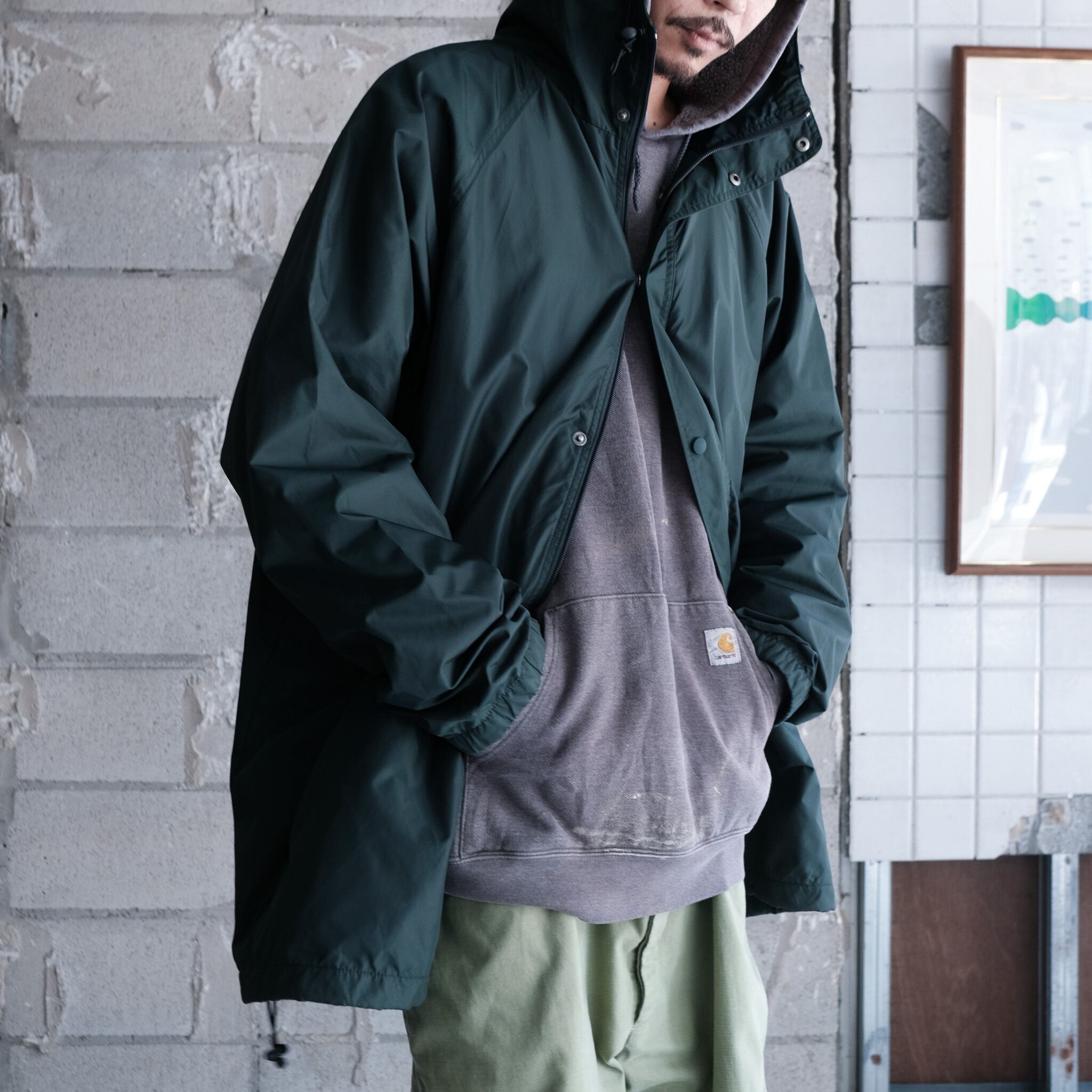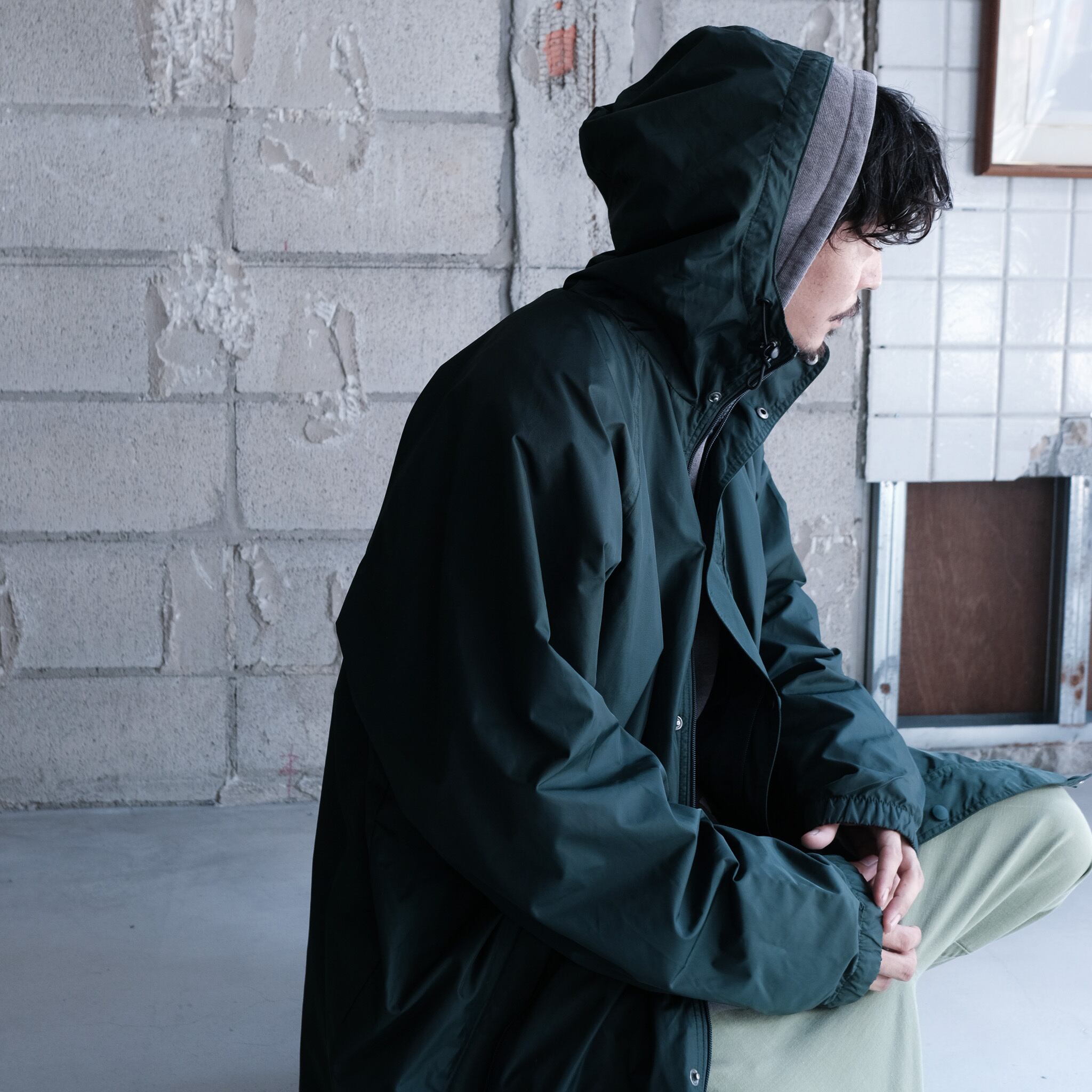 人気のj.crewのスポーツライン"J.CREW SPORT"からハーフ丈のシェルジャケット。大きめのハードに顎まである高めの襟、ボディと同色のボタンに加えダブルジップの嬉しい仕様。スタイリング次第で大きく印象が変わる着回しの効くライトアウター。全体的にリラックス感のあるシルエットで太いアームホームによってインナーに着込むことも可能。