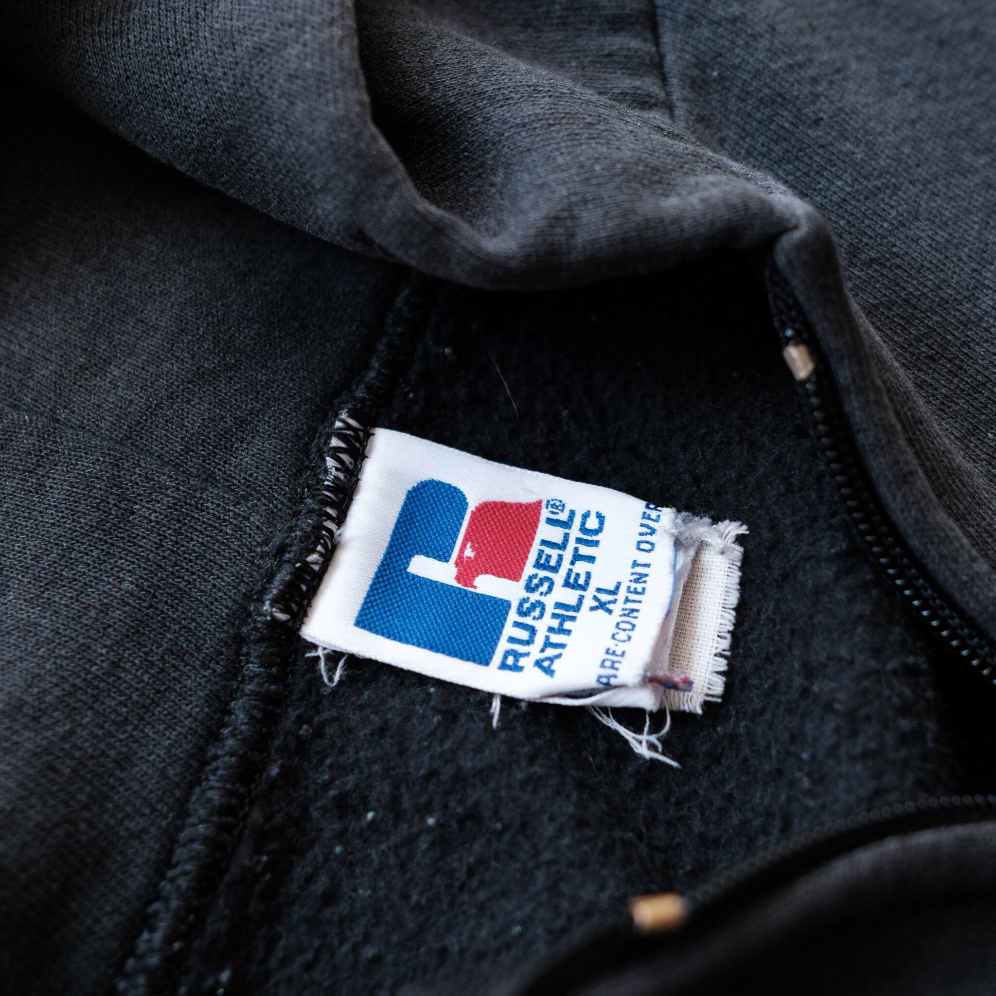 古着市場で数あるスウェットアイテムの中でも一際トレンド感を感じさせるサイジングの90s"Russel"。広い身幅にコンパクトな着丈、締まりの良いリブによってより短丈が強調。洗い込むことで褪色していくボディは経年変化も楽しめます。大きめのフードにフロントのペイントが程良いアクセントに。