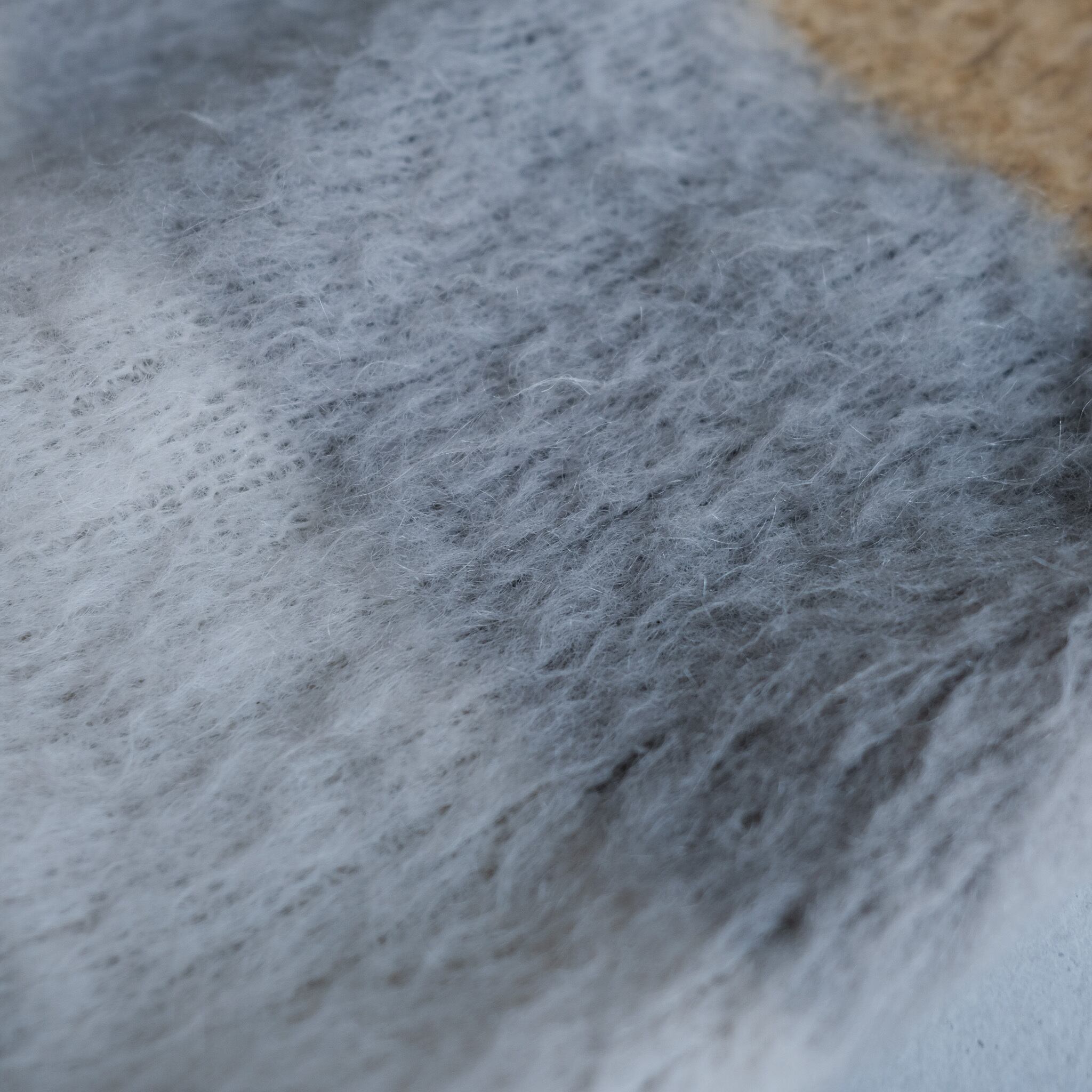 表記ありませんがモヘア混のウールニットです。