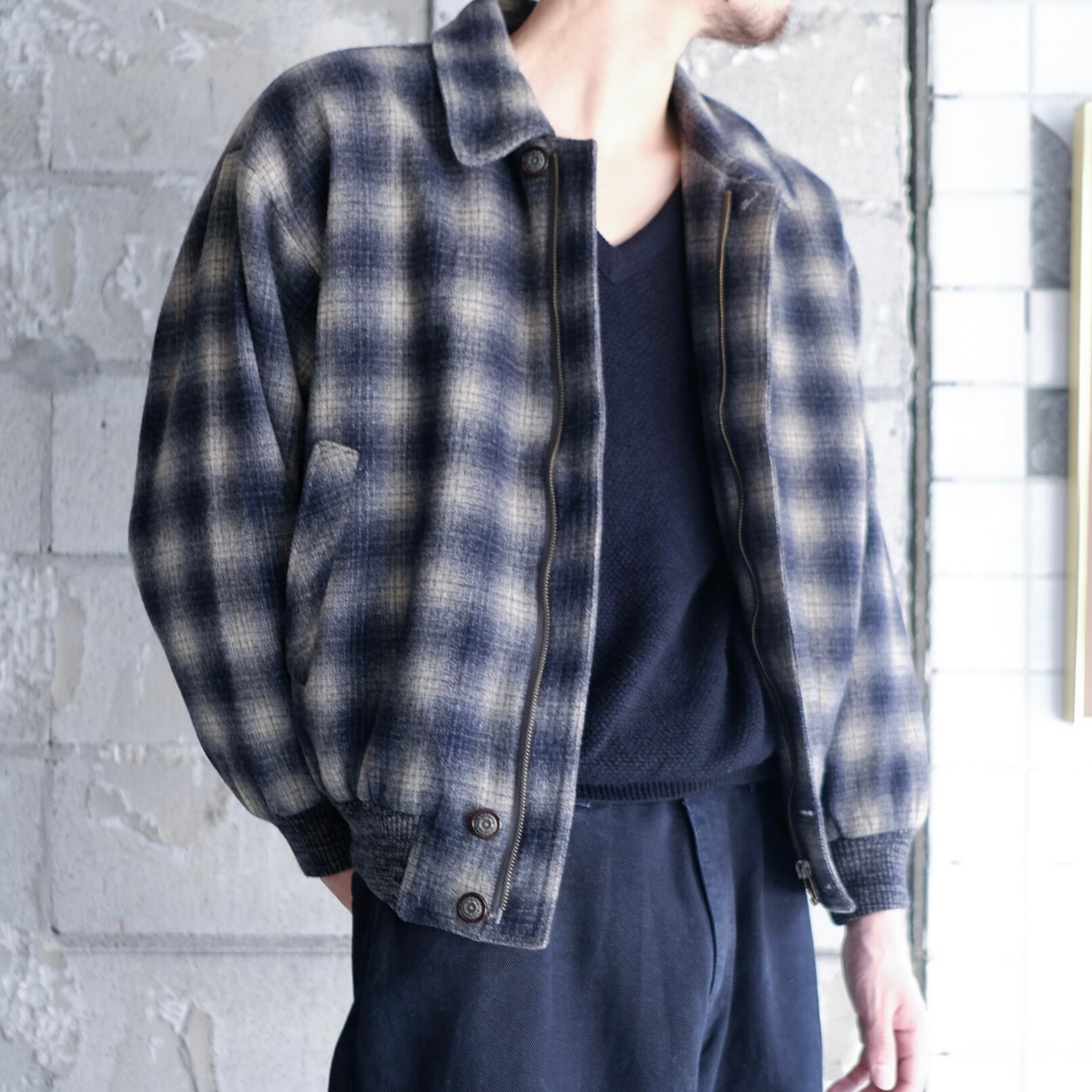 恐らく90年代頃のオンブレチェック柄のウールブルゾン。