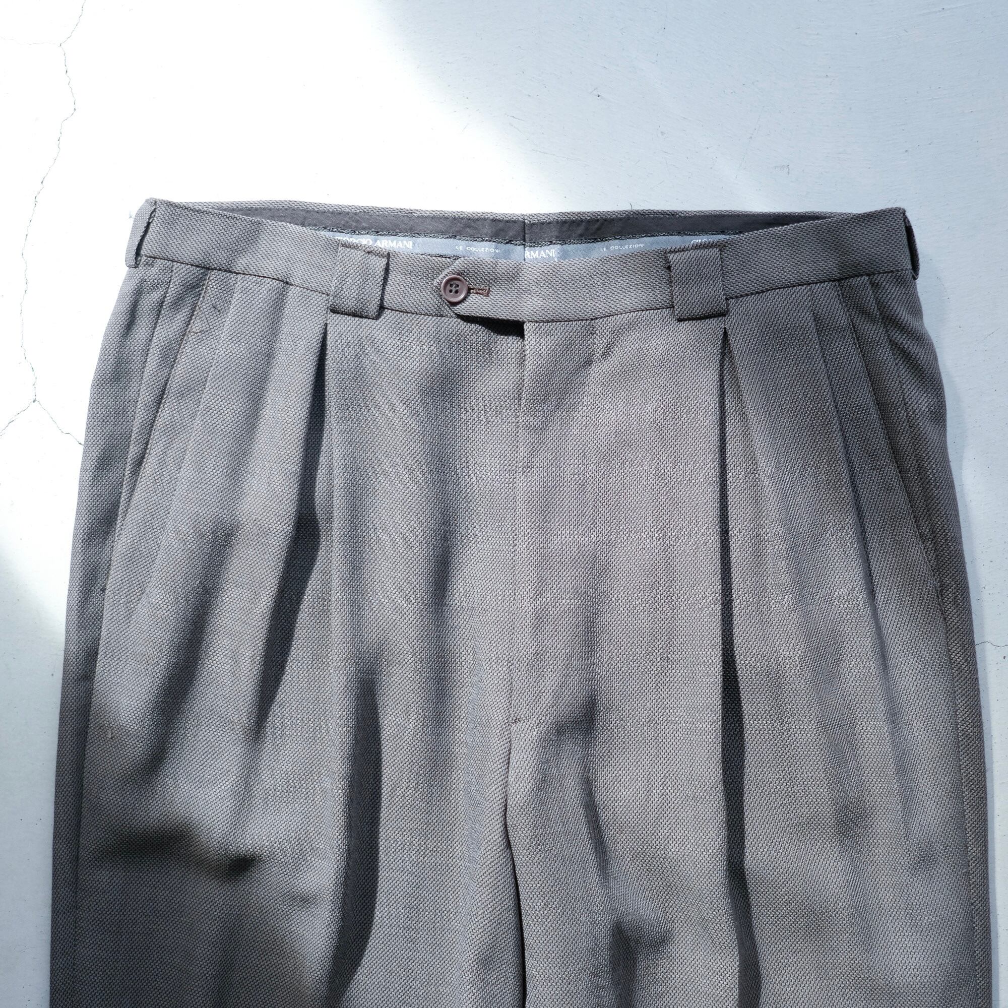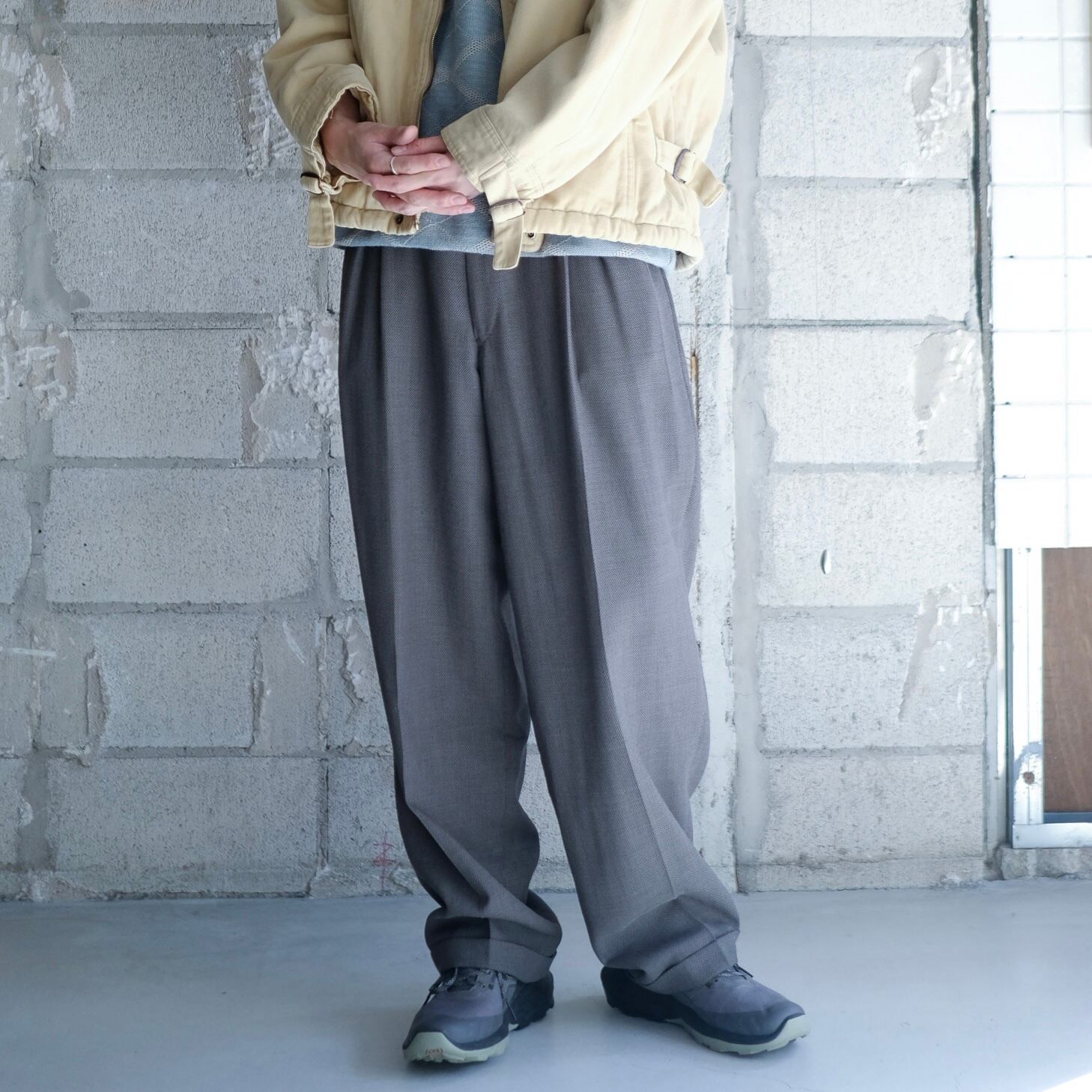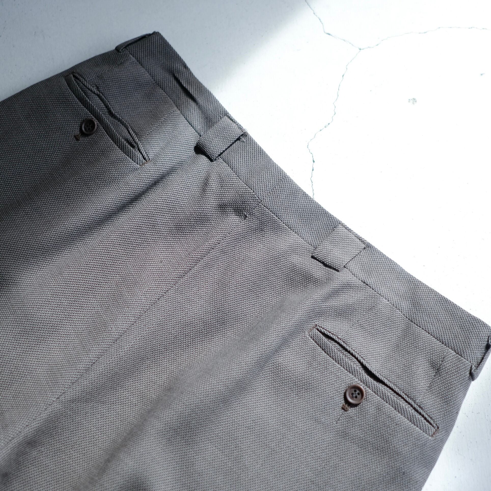 凹凸感のある立体的で上質な生地を使用したタックの入ったスラックス。