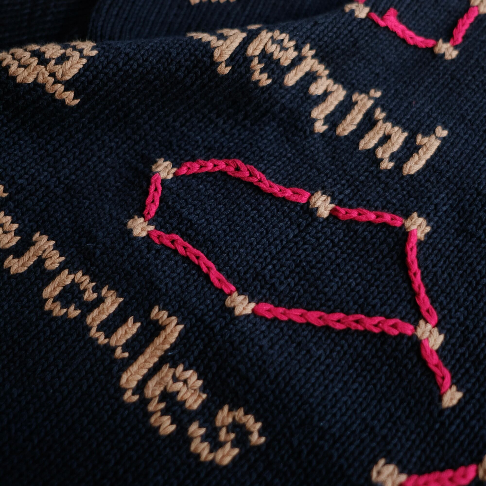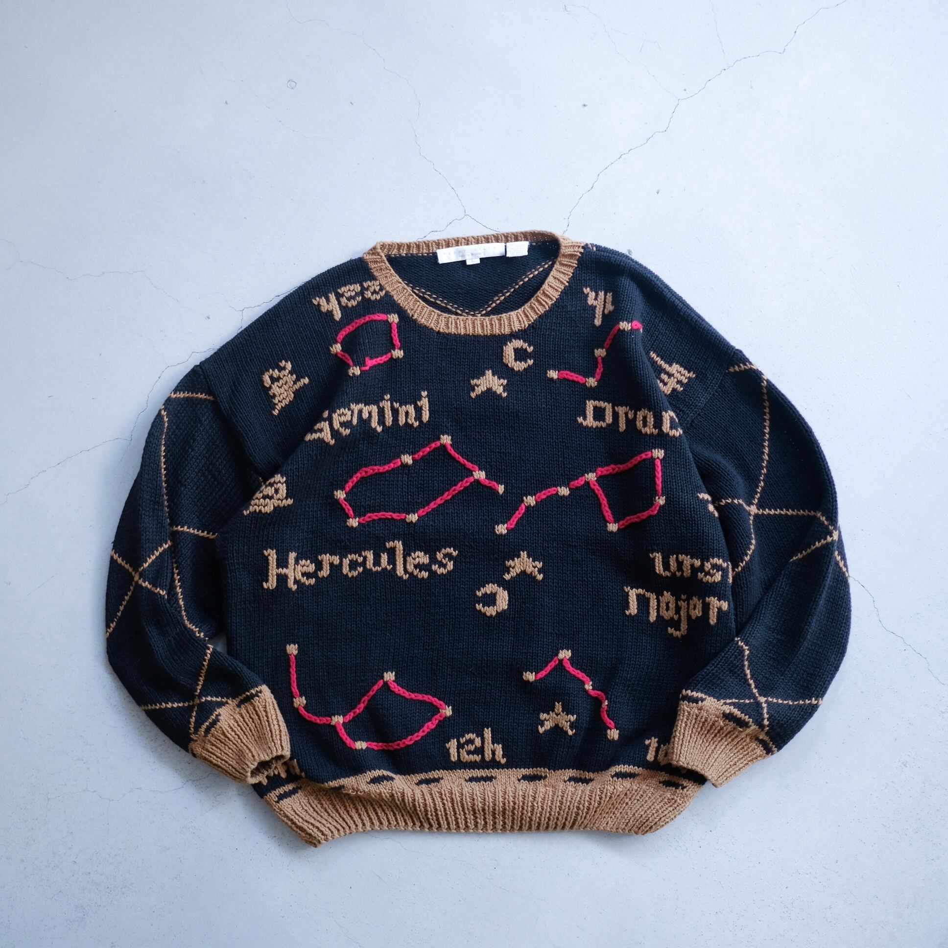 ブラックとブラウンを基調とし、レッドカラーのチェーンステッチの星座がアクセントに。