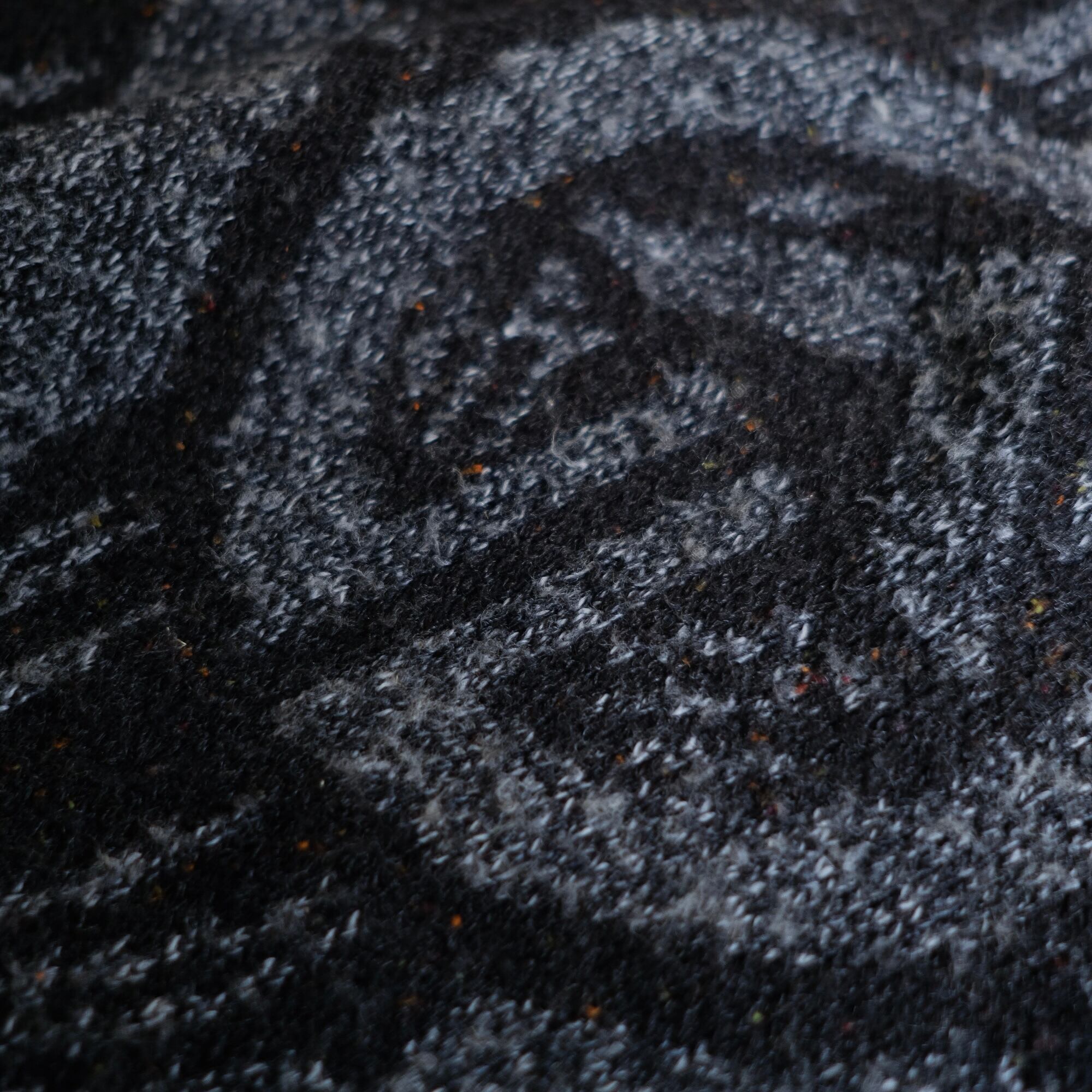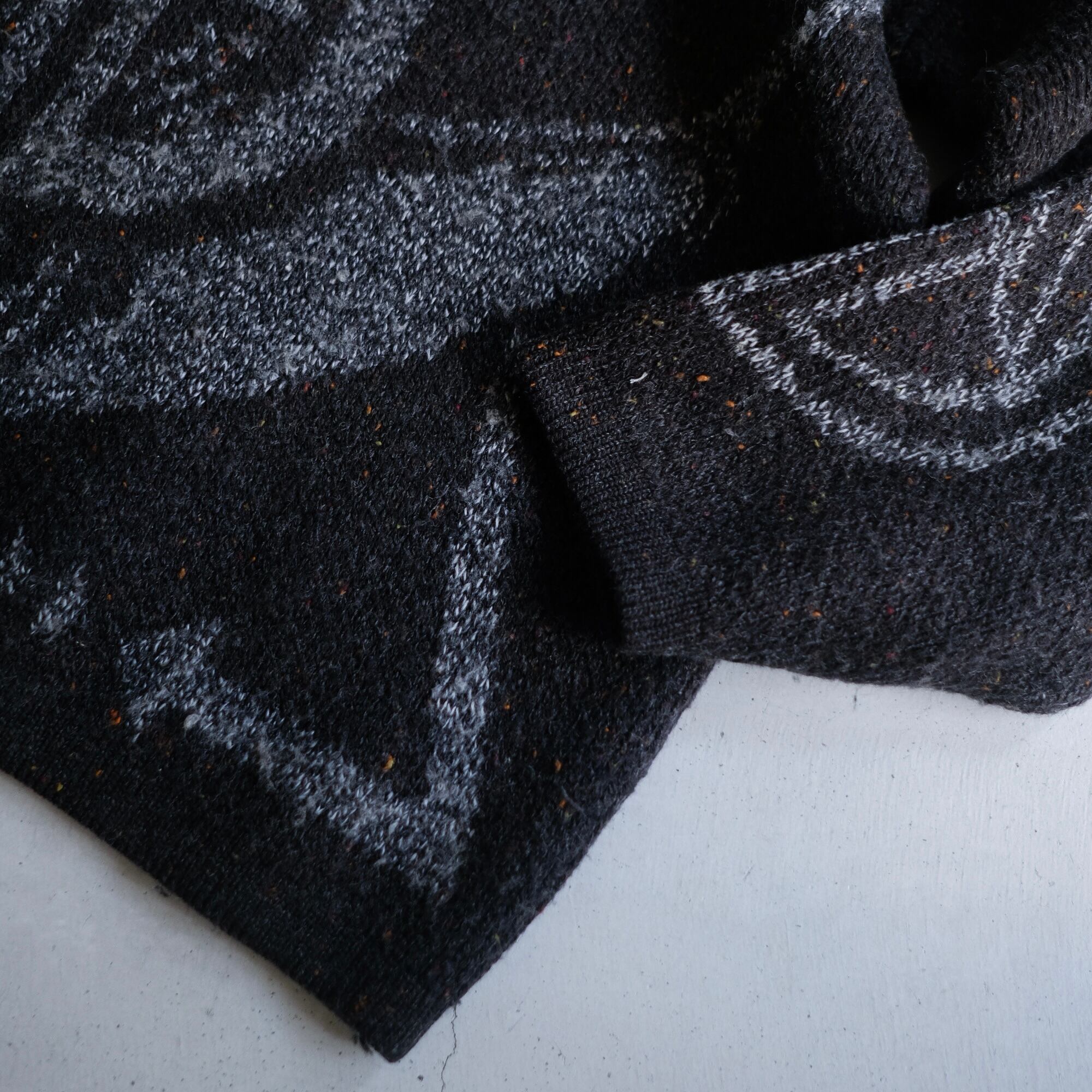 当店でも多く買い付けているインターシャニットの中でも珍しいブラックベースでダークトーンにまとめ上げられた1枚。