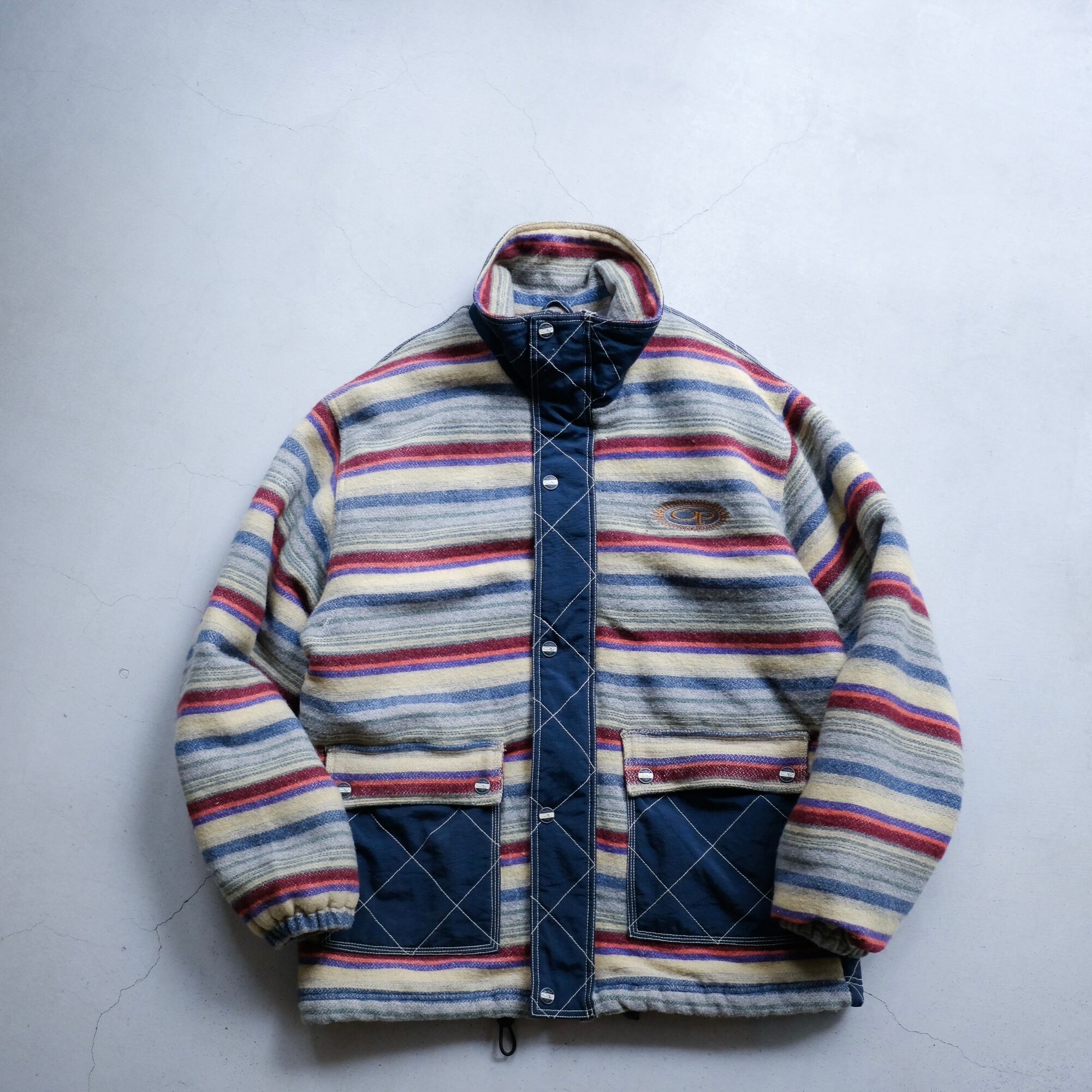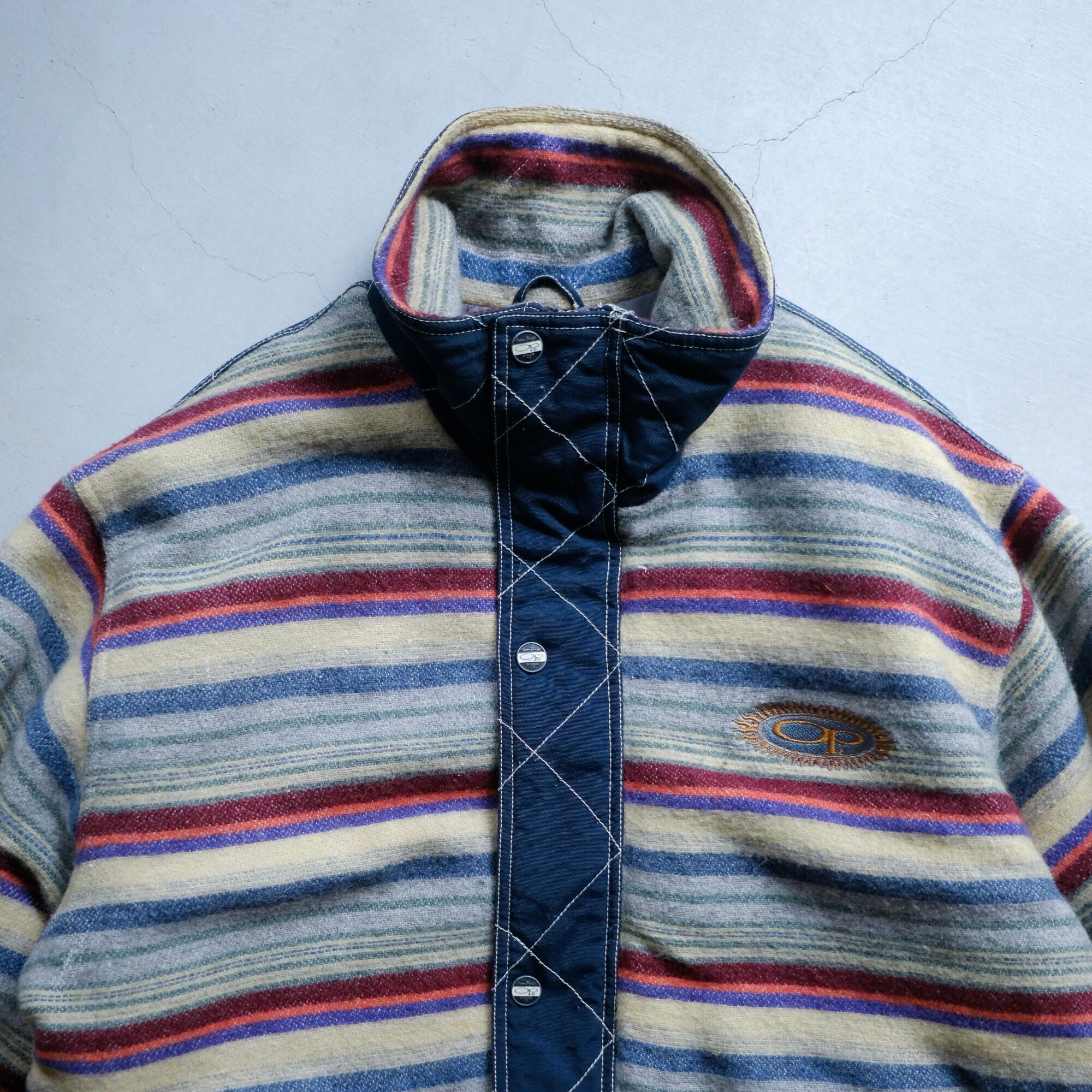 19990s Ocean Pacific multi stripe/quilting switching design stand collar jacket