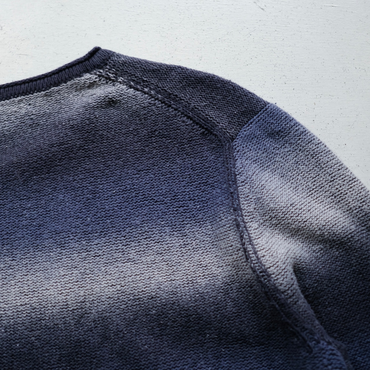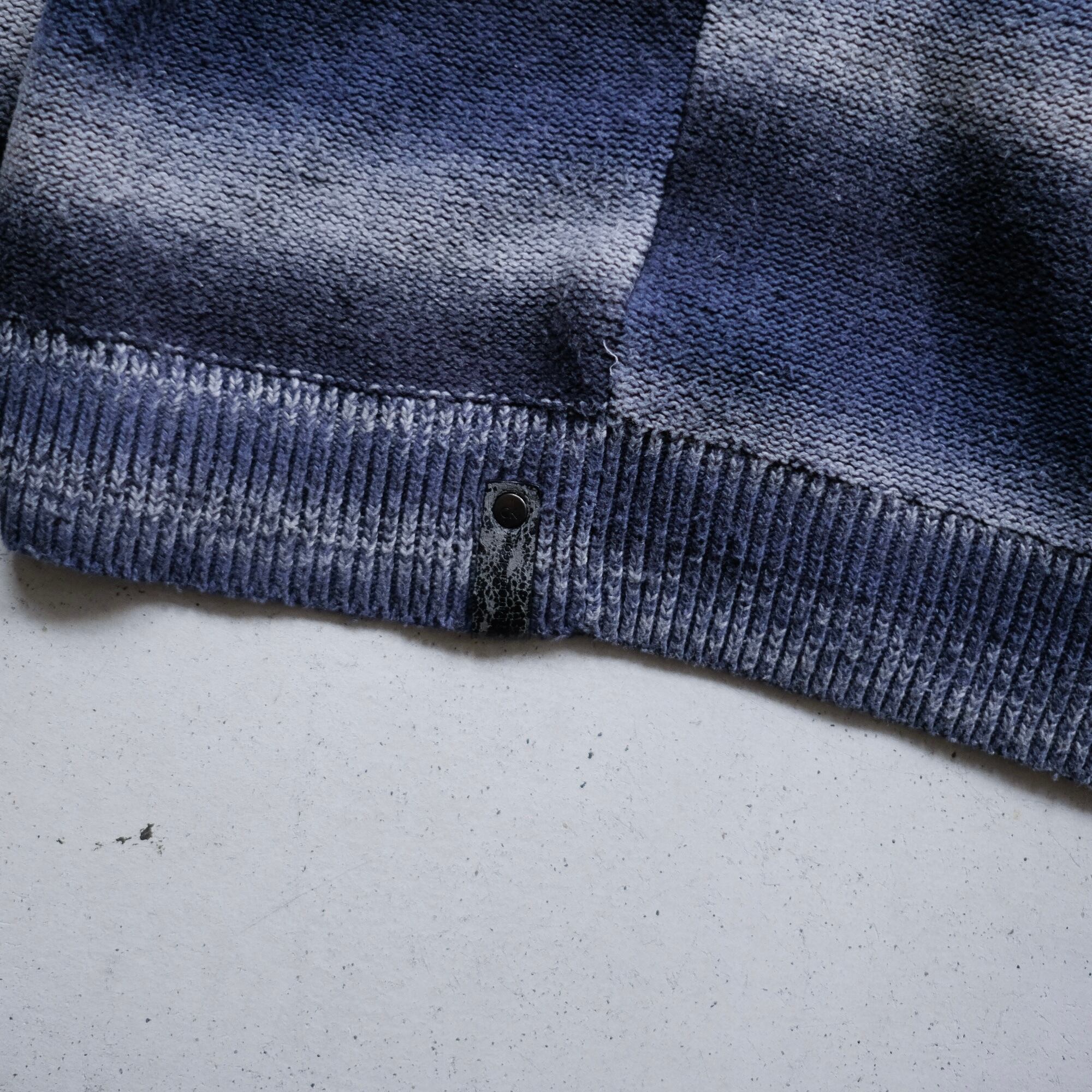 ディテールも抜け目がなく、首元のロールネックや袖裾もしっかりとグラデーション、サイドの裾にはリベットでパッチが取り付けられてる。