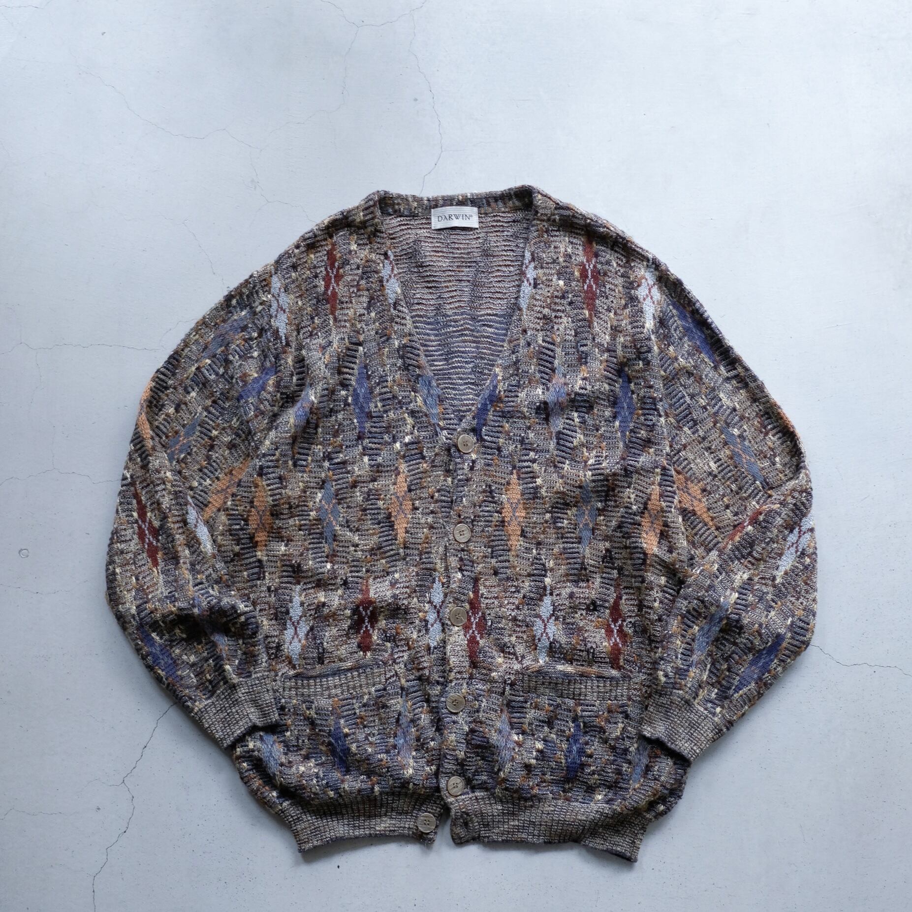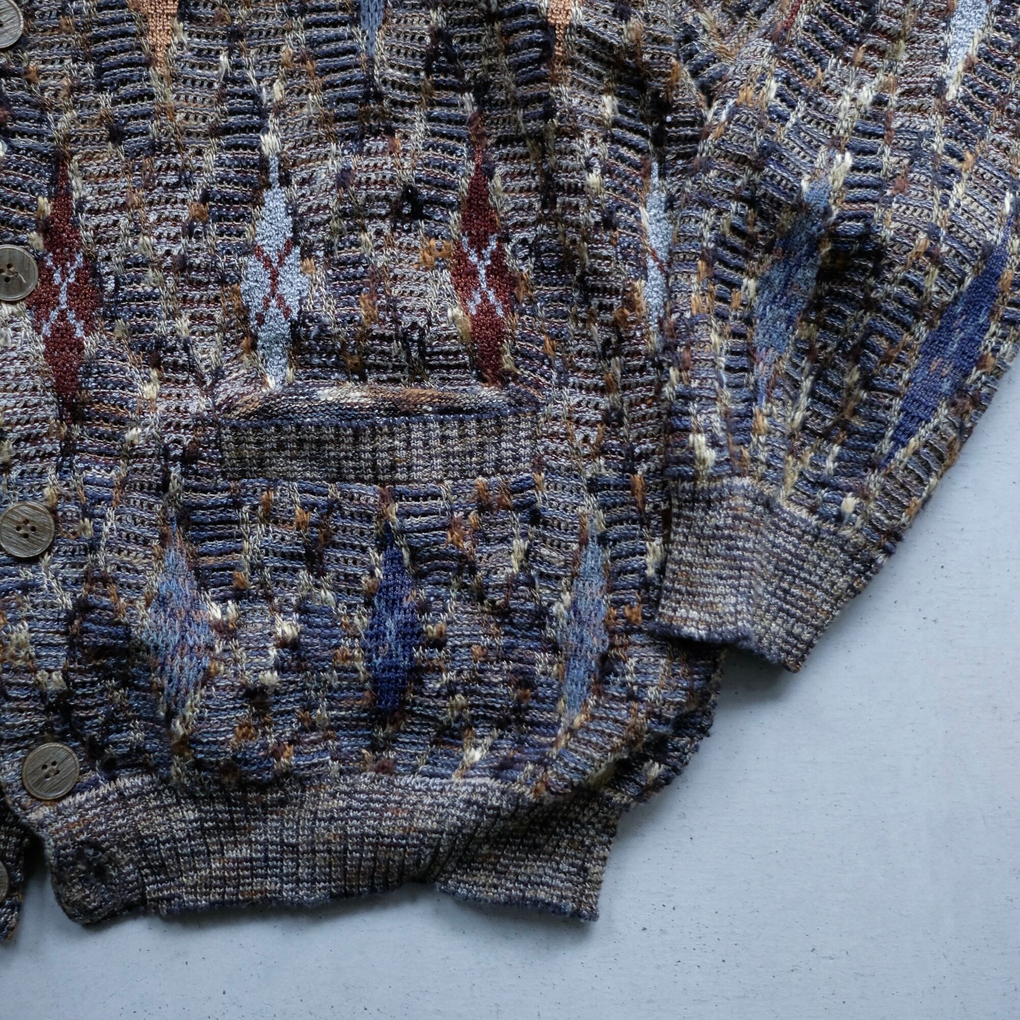 1990s diamond pattern cotton knit cardigan